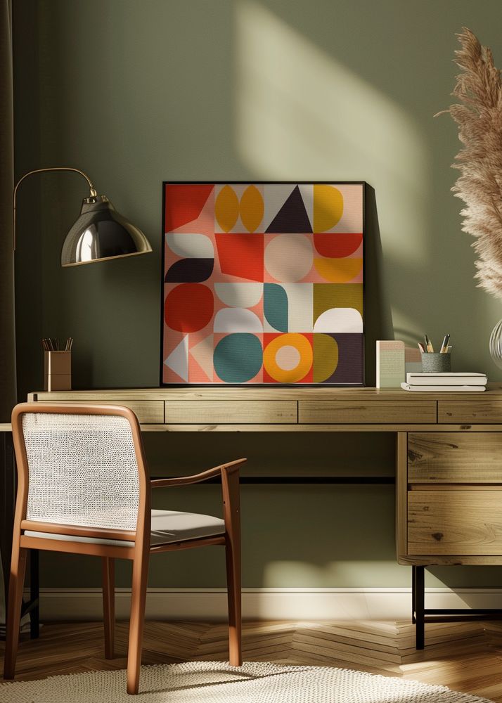 Stilīgs plakāts, kas ir izdevīgi saskaņots ar citiem motīviem, lai izveidotu modernu attēlu sienu.