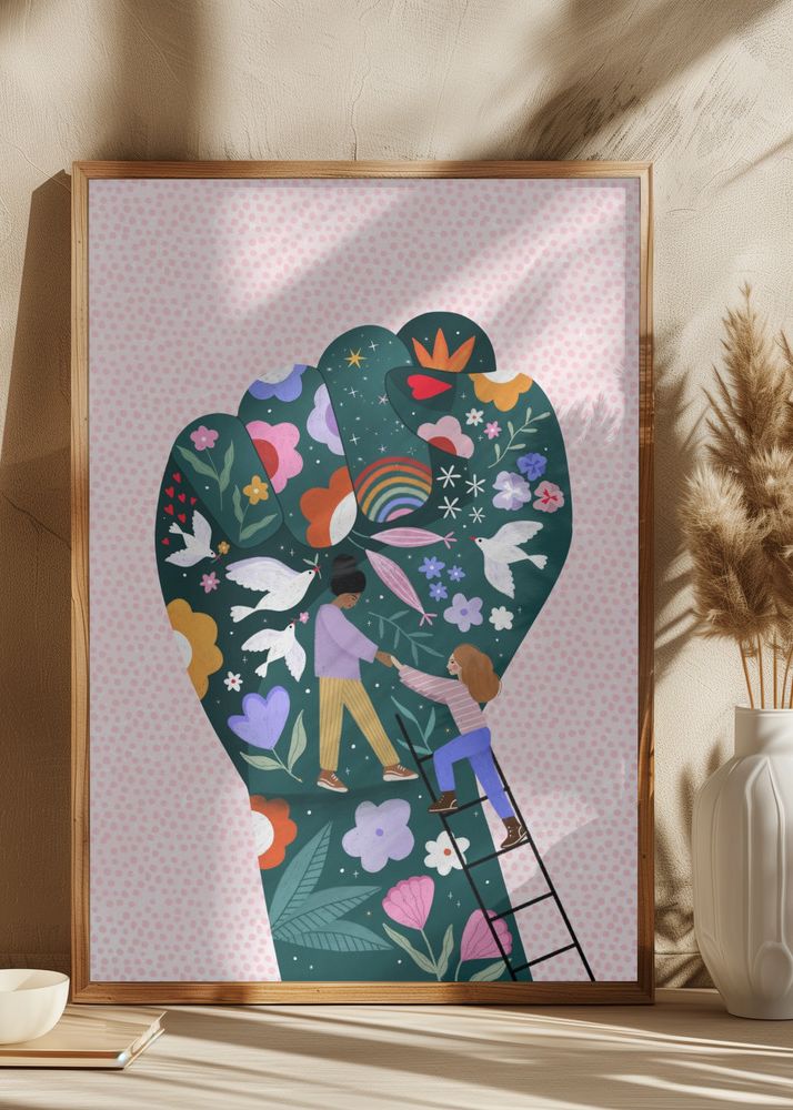 Stilīgs plakāts, kas ir izdevīgi saskaņots ar citiem motīviem, lai izveidotu modernu attēlu sienu.