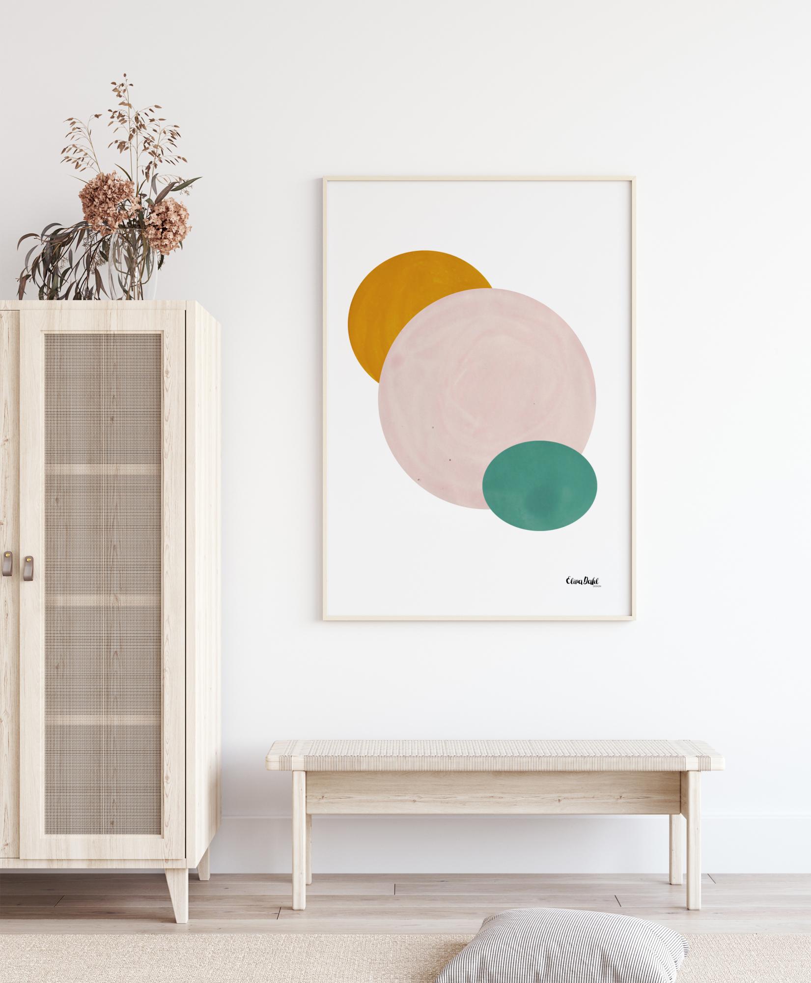 Stilīgs plakāts, kas ir izdevīgi saskaņots ar citiem motīviem, lai izveidotu modernu attēlu sienu.
