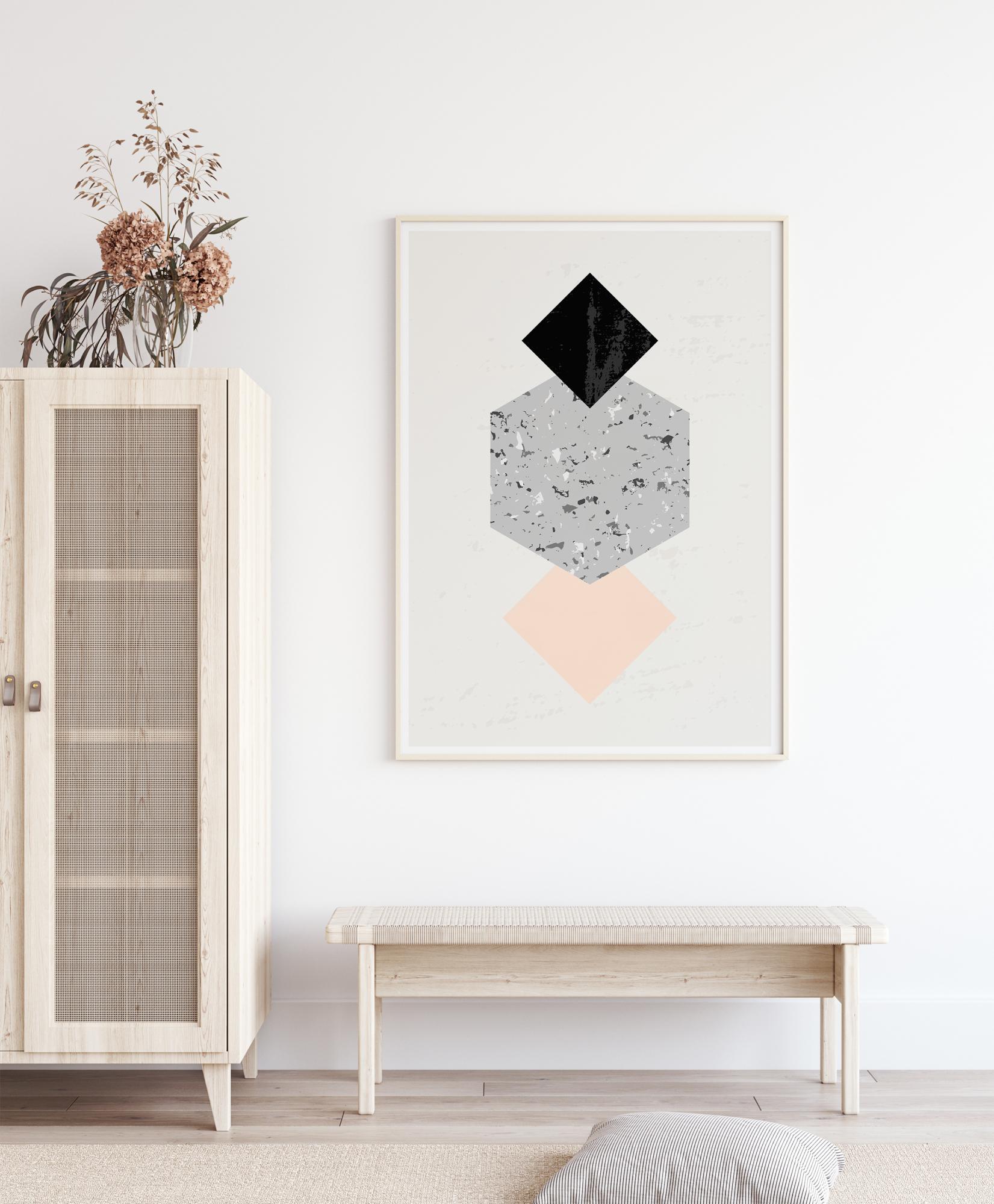 Stilīgs plakāts, kas ir izdevīgi saskaņots ar citiem motīviem, lai izveidotu modernu attēlu sienu.