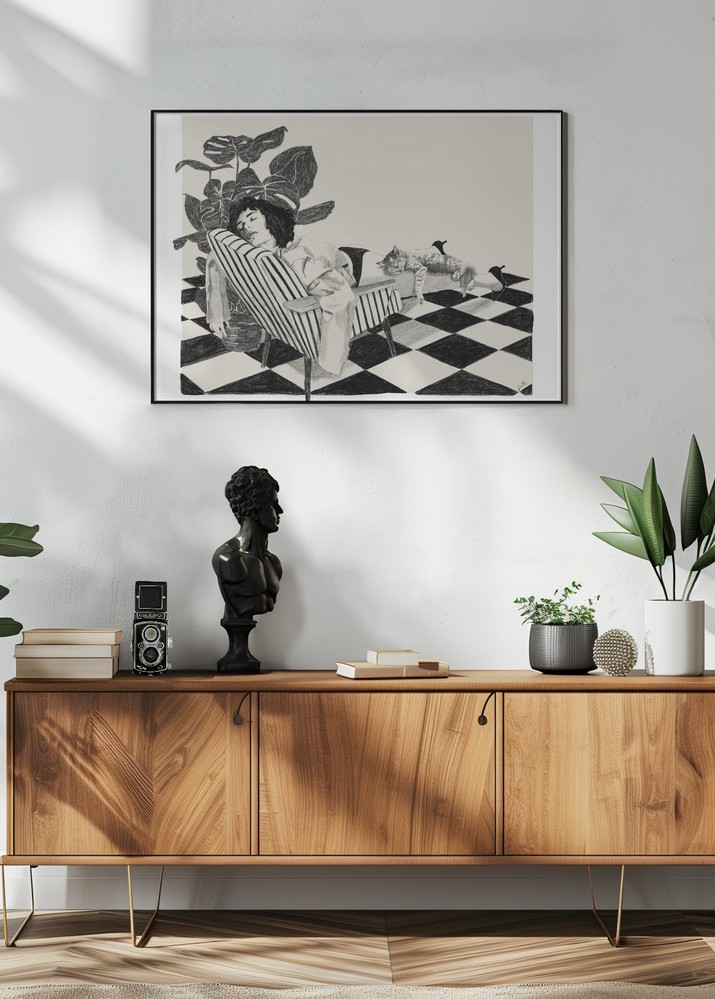 Stilīgs plakāts, kas ir izdevīgi saskaņots ar citiem motīviem, lai izveidotu modernu attēlu sienu.