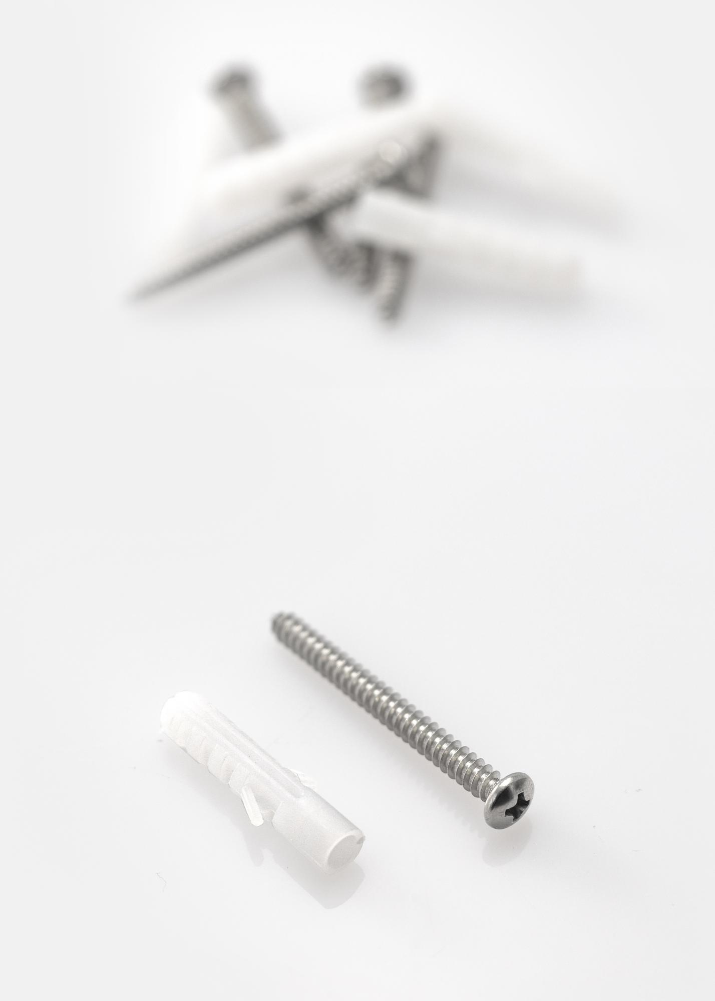 Pārliecinieties, ka plakāti, sienu dekorācijas un plaukti ir pienācīgi piestiprināti, izmantojot šos betona un akmens dībeļus! Plastmasas dībeļi tiek piegādāti komplektā pa 5 ar atbilstošām skrūvēm. Der visiem mūsu rāmjiem.