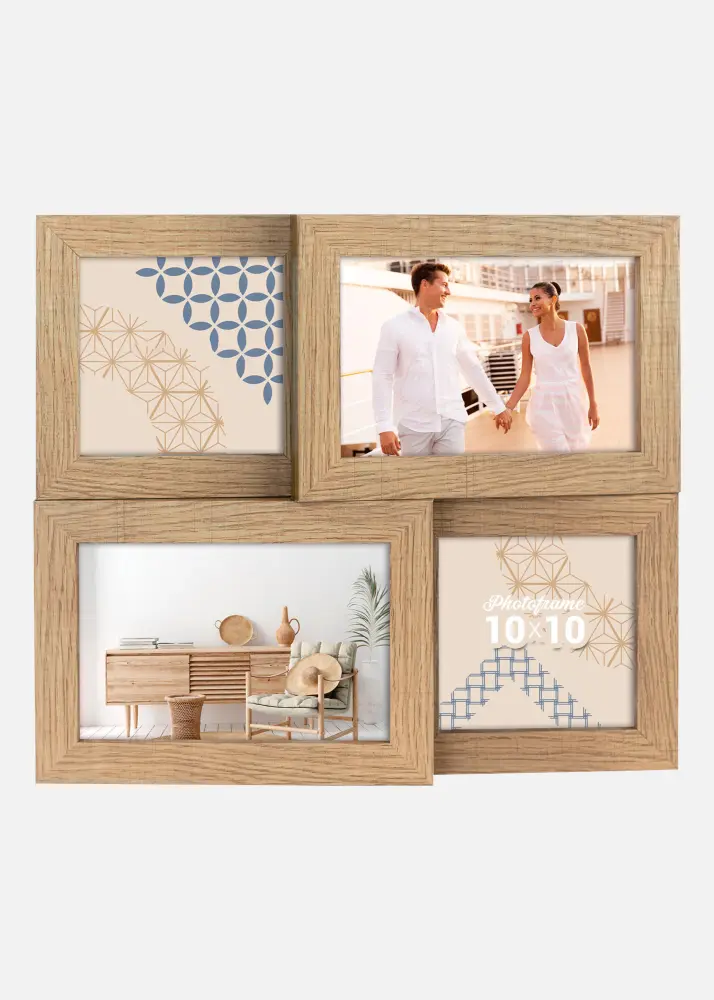 Rāmis ir veidots tā, lai tas derētu attēliem izmēros 10x10 cm un 10x15 cm, nodrošinot elastību dažādu formātu kombinēšanai. Ar kopējo izmēru 30x27 cm šis kollāžas rāmis kļūst par skaistu pievienojumu jebkurai telpai.