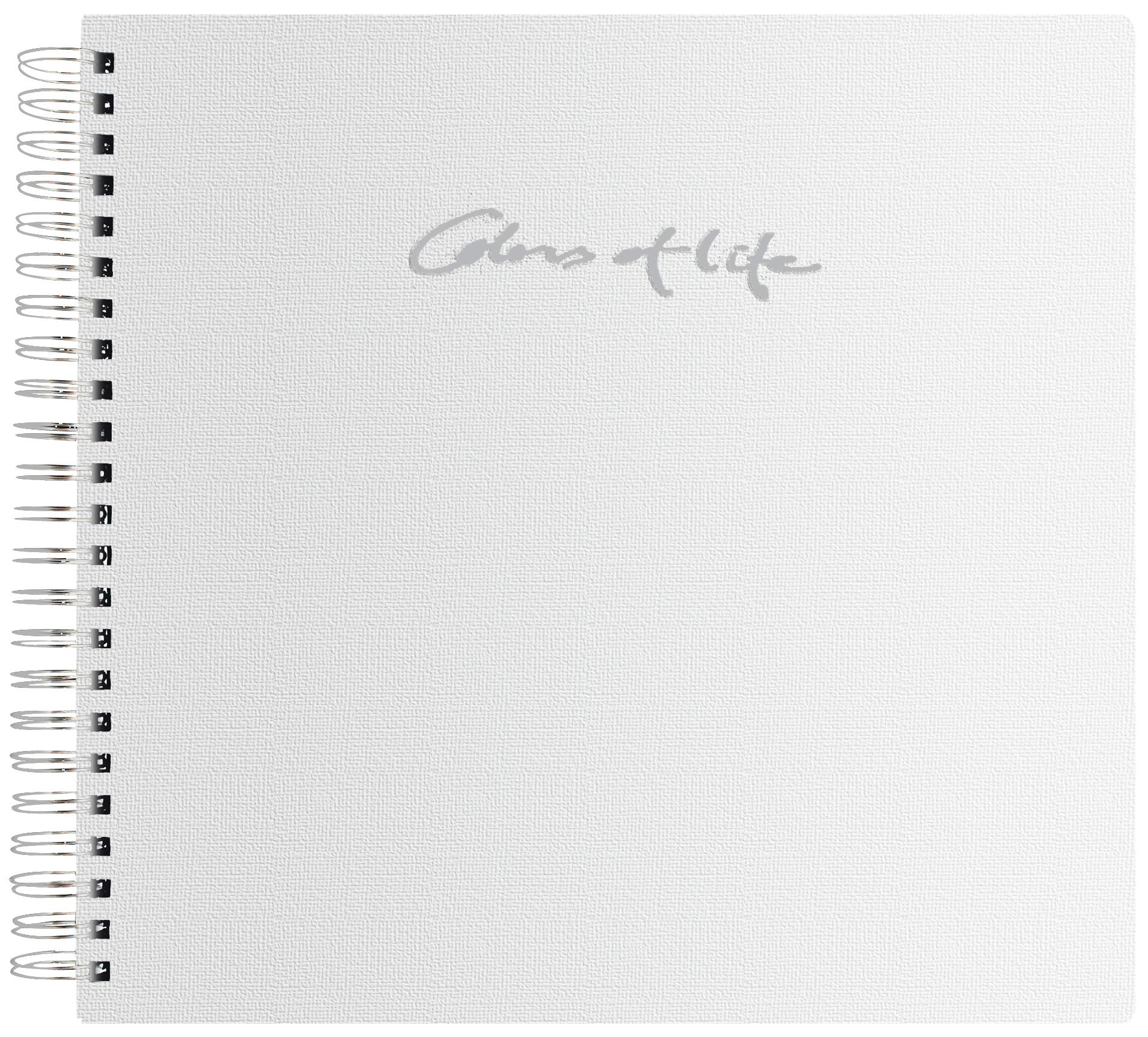 Spirālveida albums 30x30 cm ar 24 skābju nesaturošām baltām lapām, gatavs piepildīšanai ar atmiņām! Uz albuma priekšējās lapas sudraba krāsā rakstīts "Dzīves krāsas".