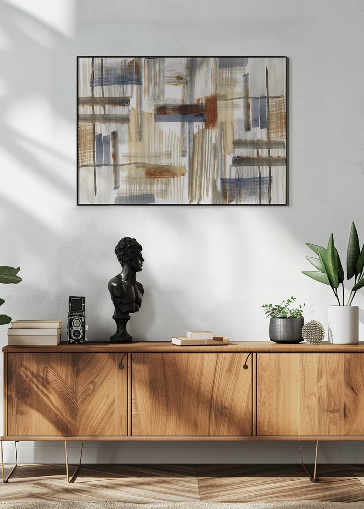 Stilīgs plakāts, kas ir izdevīgi saskaņots ar citiem motīviem, lai izveidotu modernu attēlu sienu.