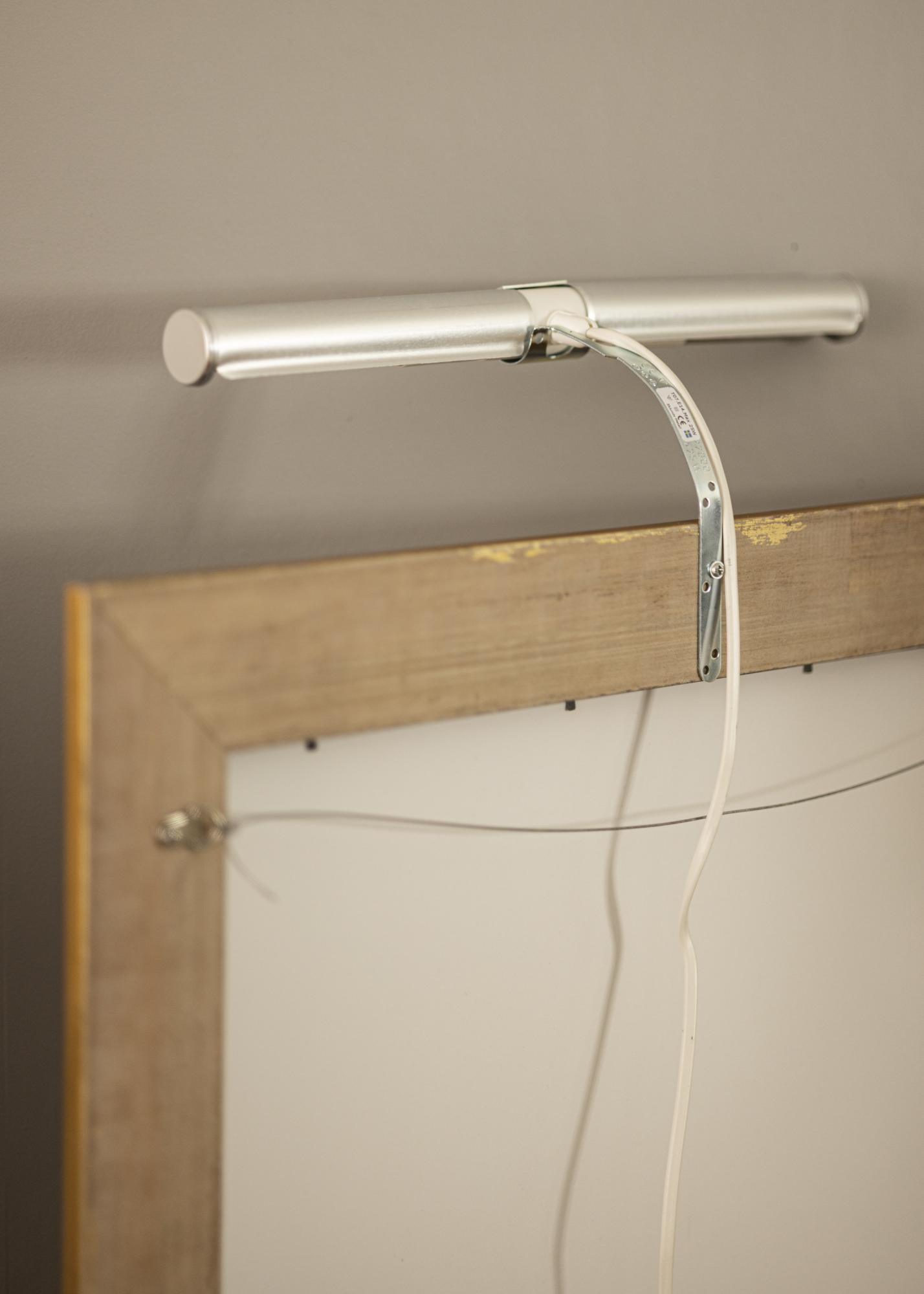 Parasti tu piestiprini gleznu apgaismojumu rāmja aizmugurē, taču tam nepieciešams koka rāmis (daži kompozītrāmji arī der), kam ir plata profīla, lai tas būtu iespējams ieskrūvēt rāmī. Ar mūsu sienas stiprinājumu tev tas nebūs jāuztraucas, vienkārši uzstādi savu gleznu apgaismojumu tieši pie sienas aiz gleznas.