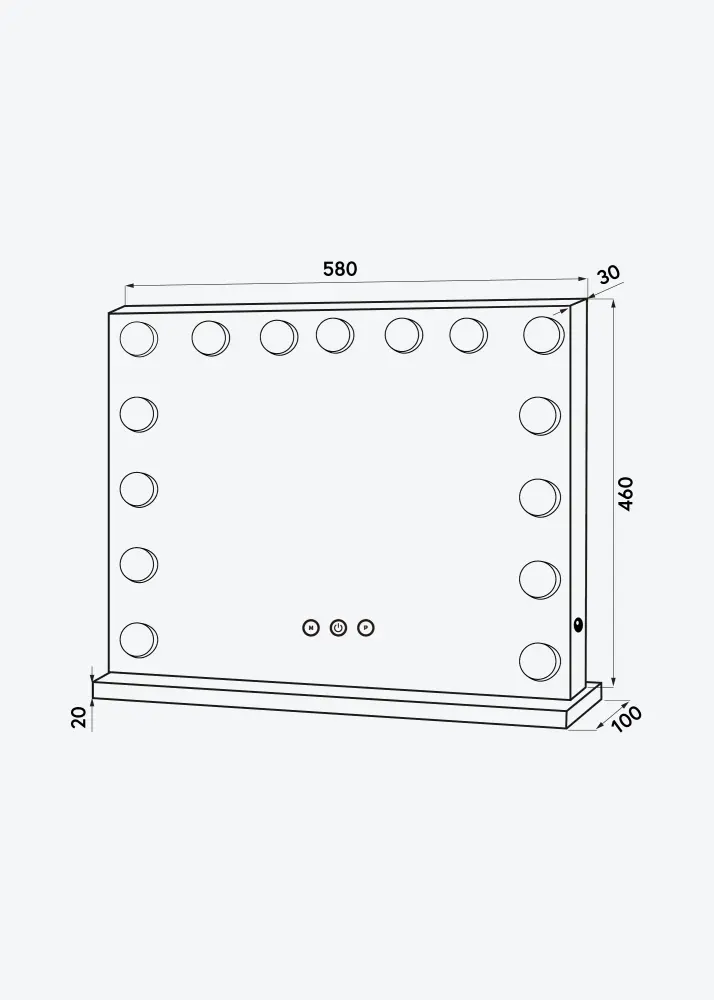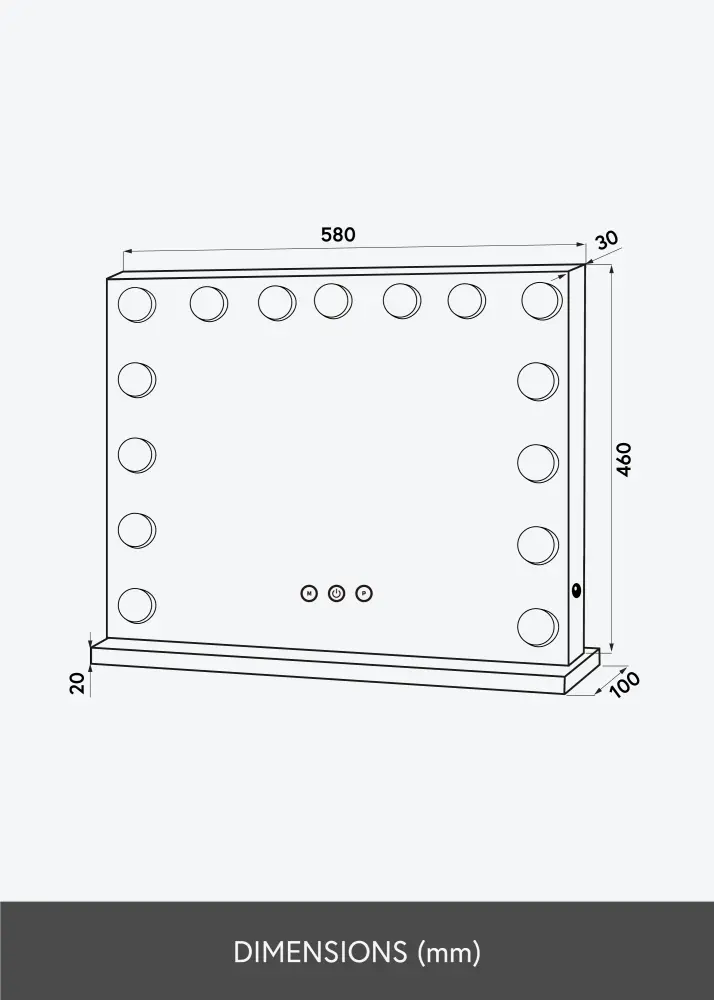 KAILA Kosmētikas spogulis Hollywood 15 Melns 58x46 cm