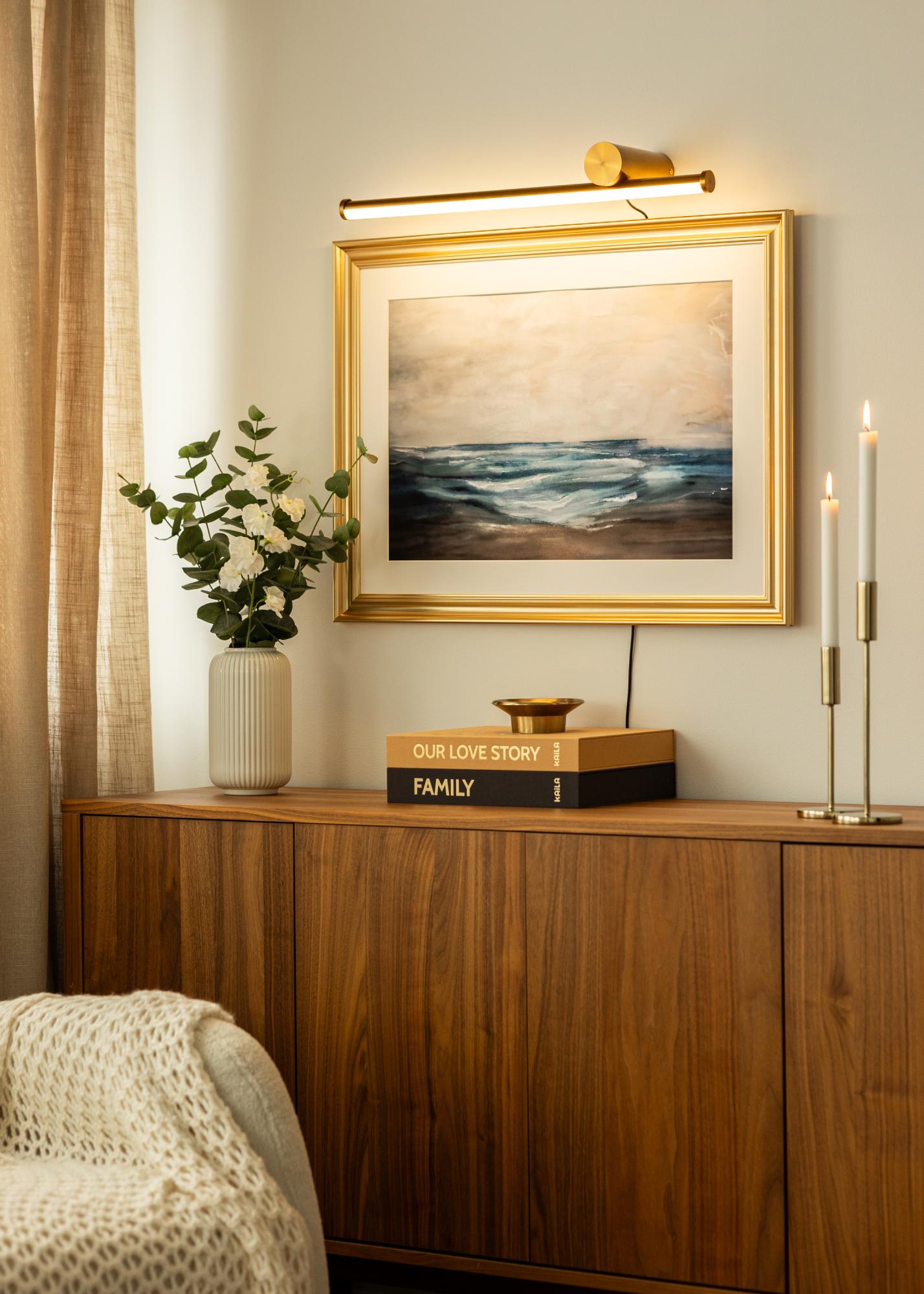 Šis gleznu apgaismojums no misiņa ir stilīgs un funkcionāls risinājums, lai izceltu tavas mākslas darbus gaumīgi. Ar dziļumu 15,3 cm un garumu 60 cm, tas ir pielāgots, lai derētu gleznām ar platumu līdz 100 cm. Pateicoties tā elegantajam un mūžīgajam dizainam, tas iekļaujas dažādos interjera stilos un piešķir telpai ekskluzīvu sajūtu. Misiņa apdare pievieno sofistikātu detaļu, kas uzlabo jūsu mākslas kopējo iespaidu.