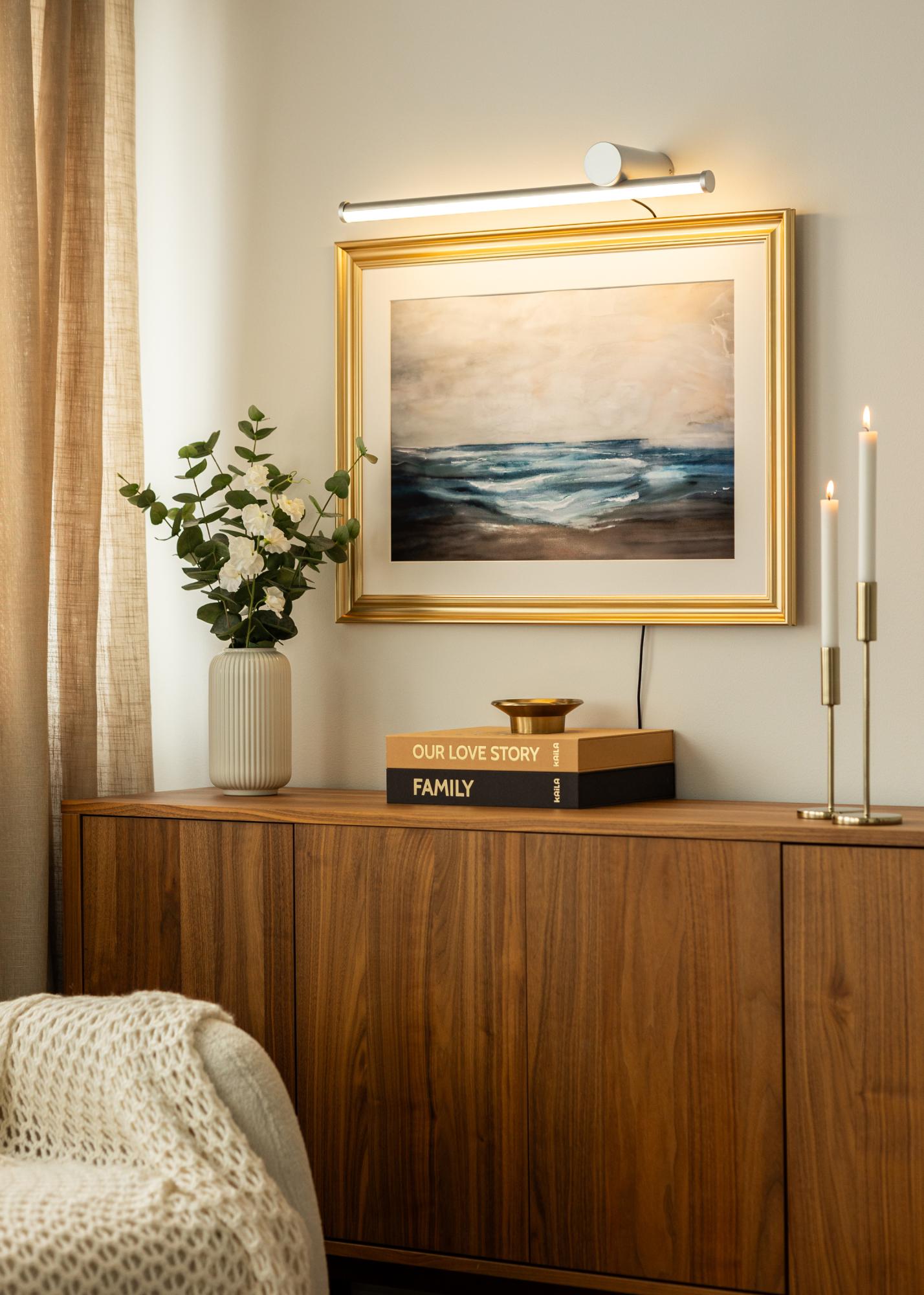 Šis sudraba gleznas apgaismojums ir vienkāršs un moderns veids, kā apgaismot jūsu mākslas darbus. Ar dziļumu 15,3 cm un garumu 60 cm tas ir ideāli piemērots gleznām līdz 100 cm platumā, padarot to elastīgu un noderīgu daudzās dažādās vidēs. Stilīgais sudraba apdare piešķir modernu un minimālistisku izskatu, kas labi sader ar daudziem mājokļiem un interjera stiliem.
