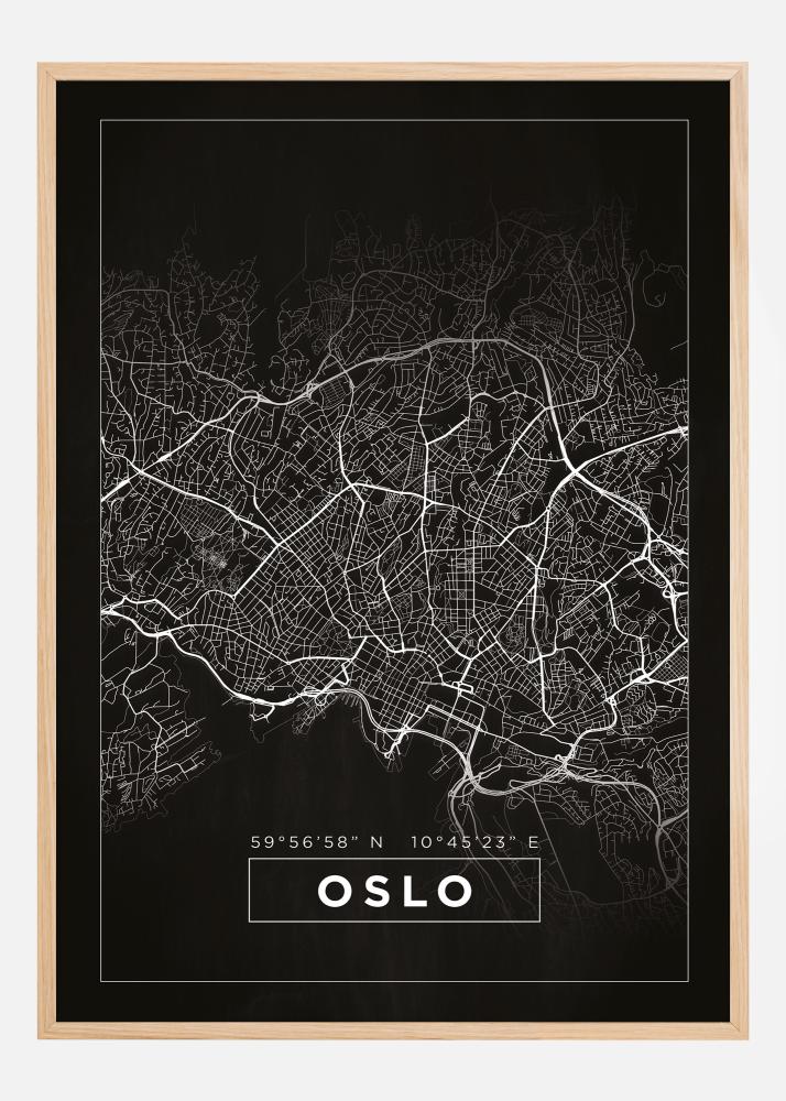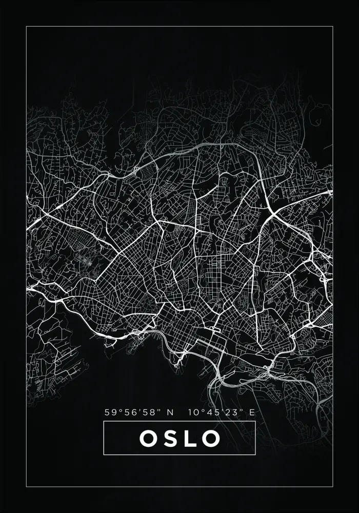 Karte - Oslo - Melns Plakāts