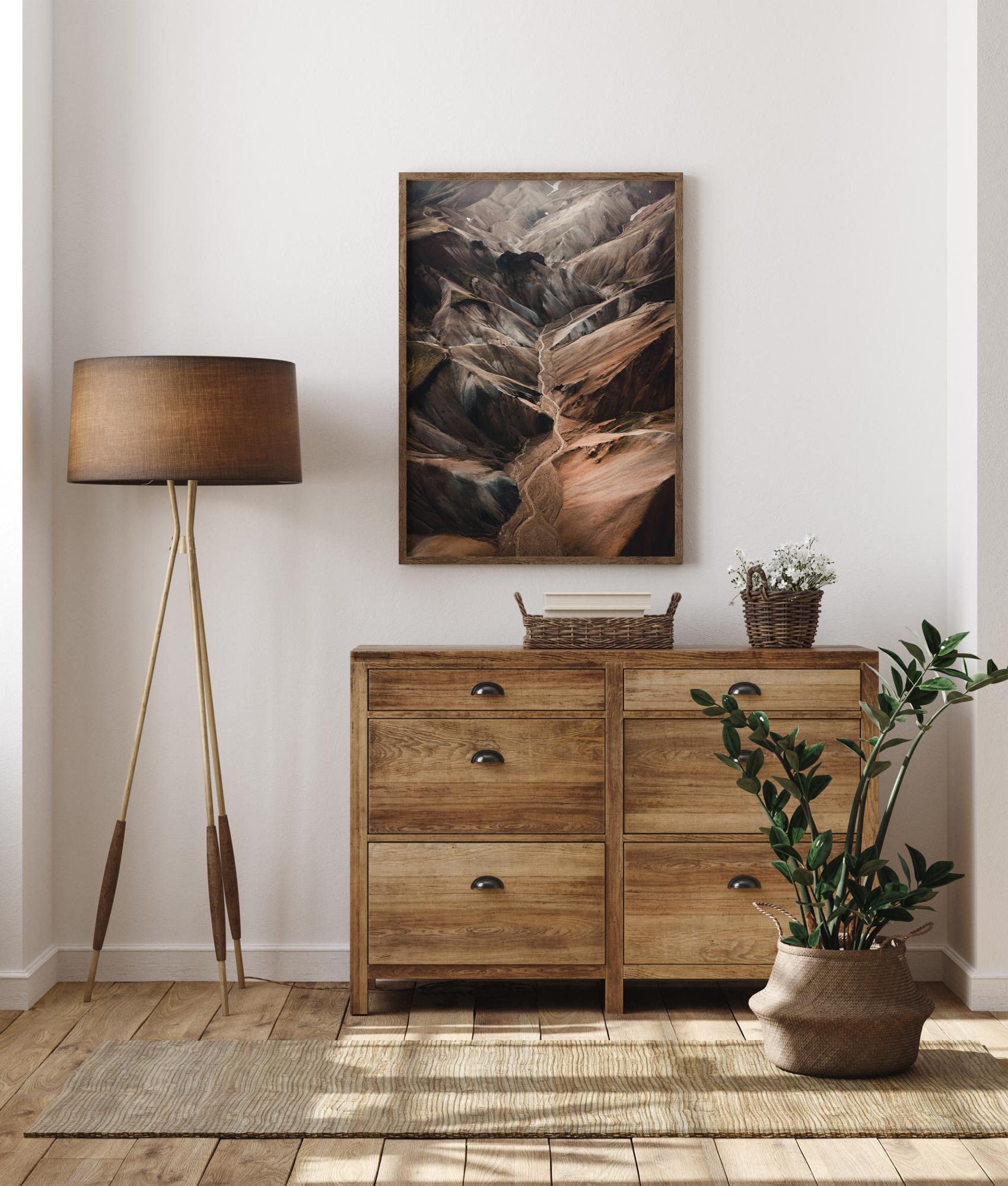 Stilīgs plakāts, kas ir izdevīgi saskaņots ar citiem motīviem, lai izveidotu modernu attēlu sienu.