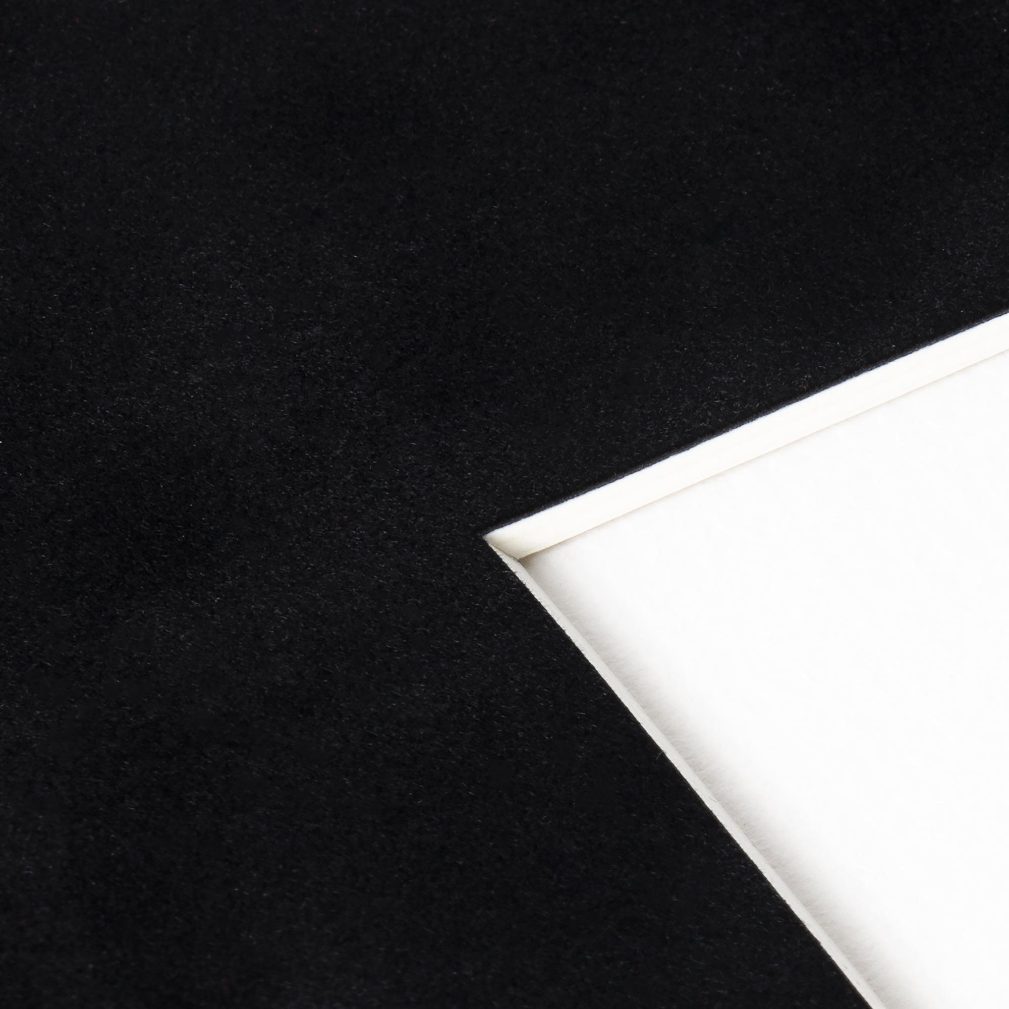 Izveidojiet elegantu un iespaidīgu ierāmējumu ar passepartout! Melns kā nakts debesis, šis greznais passepartout ir ideāls, lai vēl vairāk izceltu gaišus motīvus. Passepartout zamša sajūta piešķir tam greznu iespaidu un tādēļ ir īpaši piemērots jūsu vismīļākajām bildēm vai fotogrāfijām.