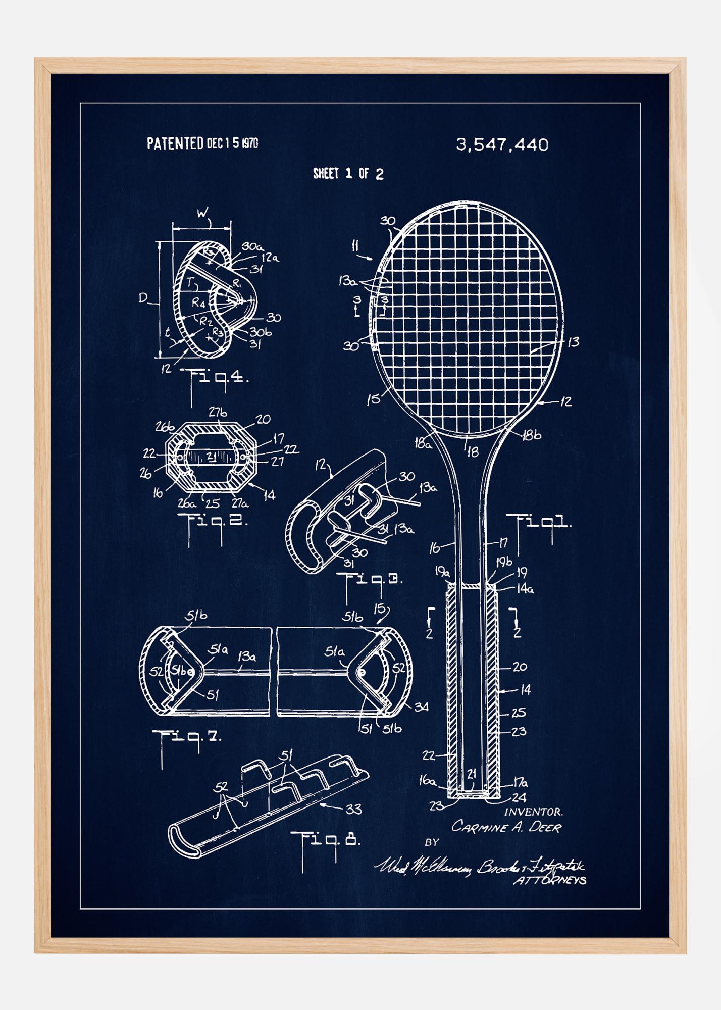 Patent Print - Tennis Racket - Blue Plakāts