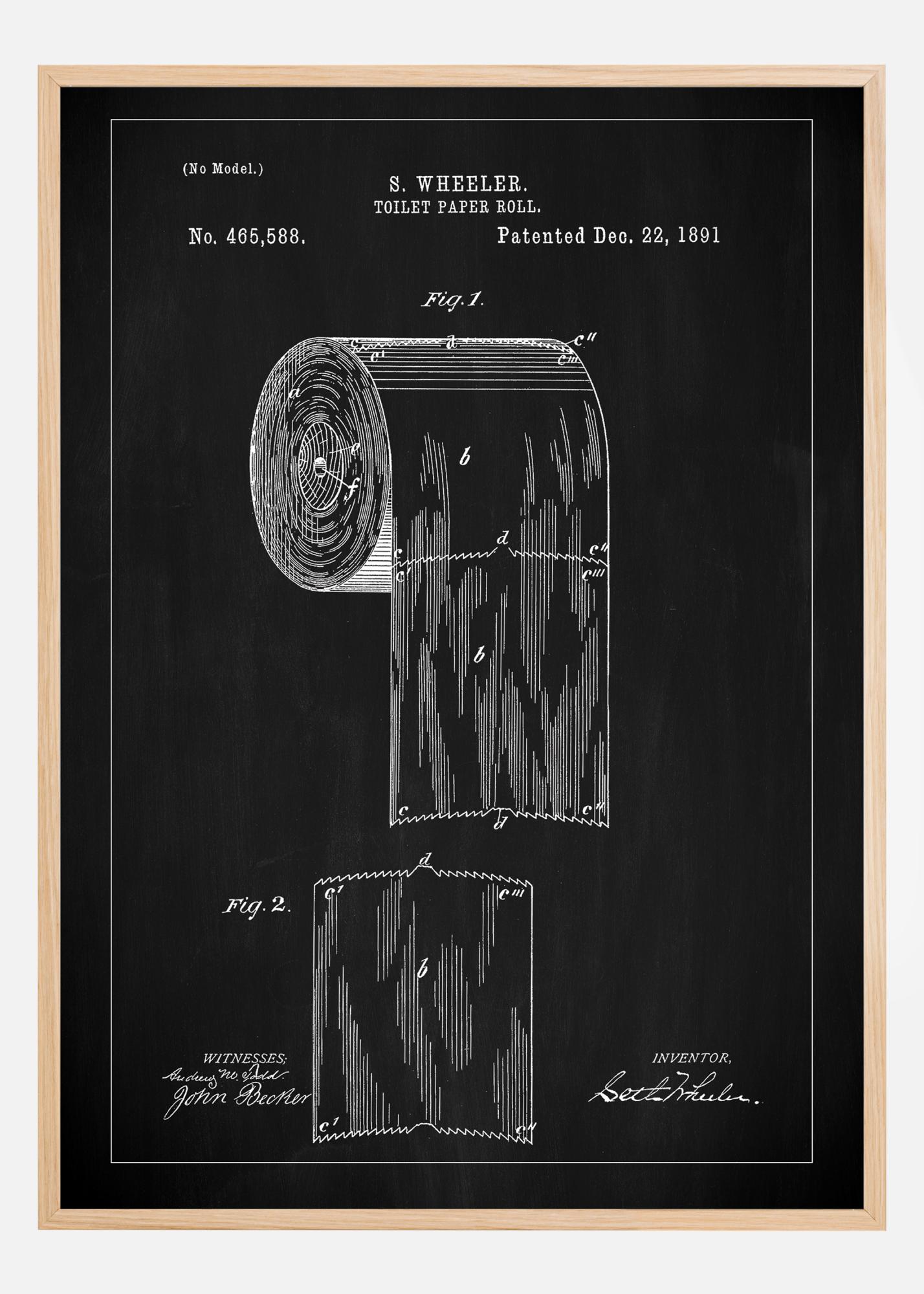 Patent Print - Toilet Paper Roll - Black Plakāts