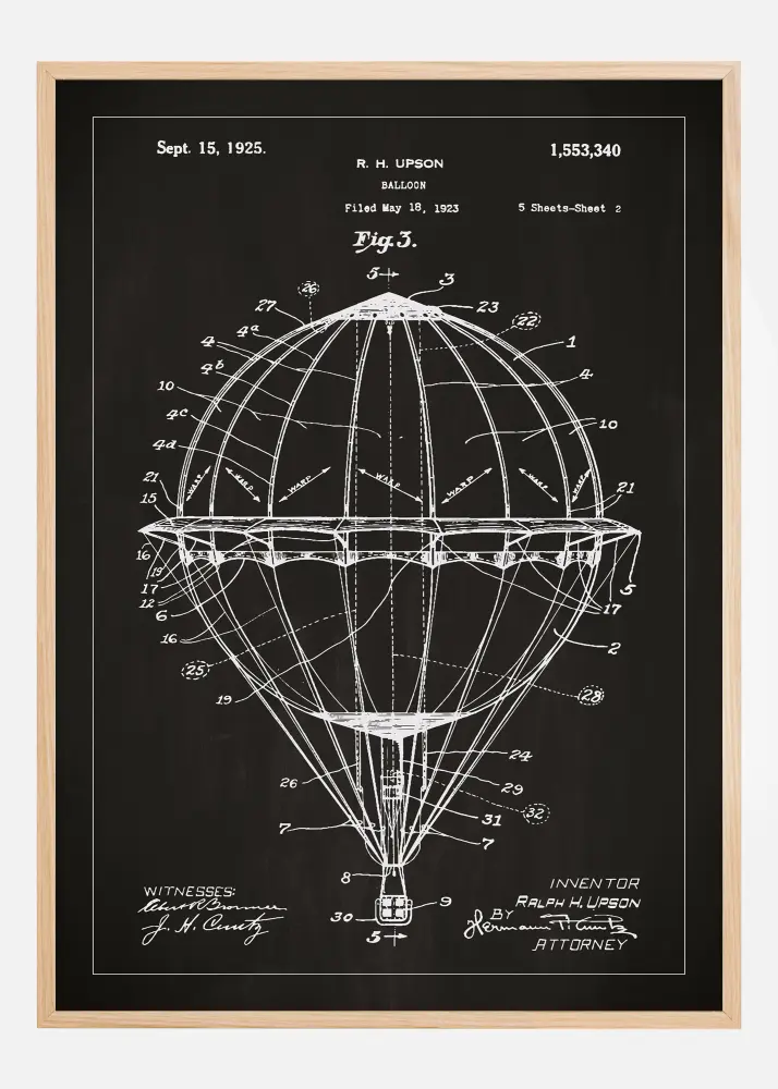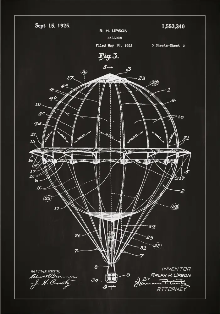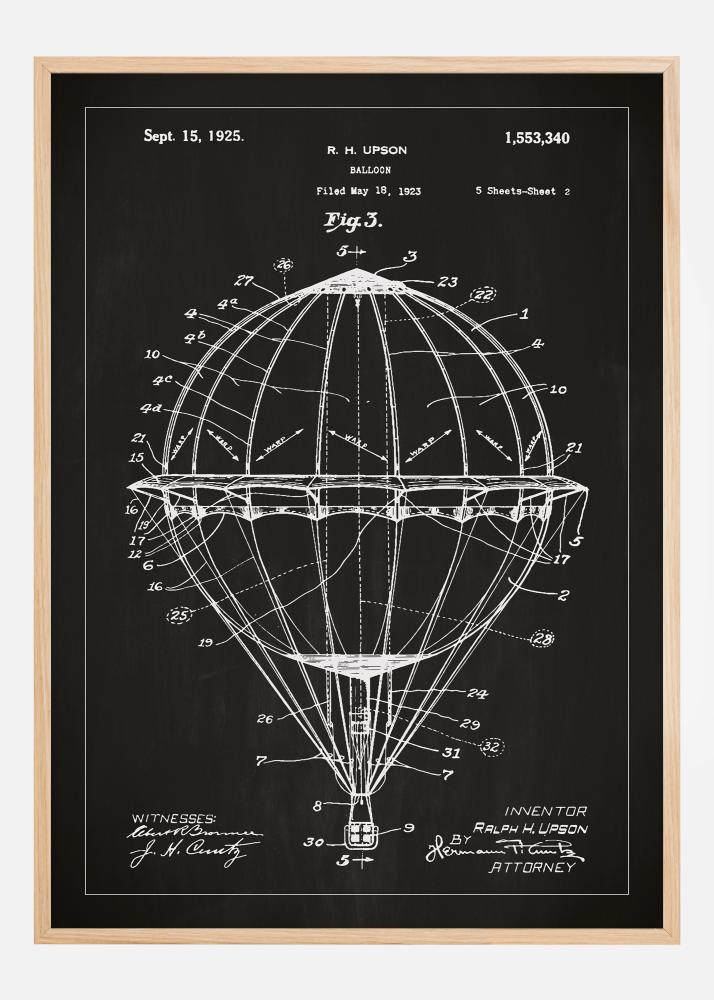Patenta rasējums - Gaisa balons - Melns Plakāts