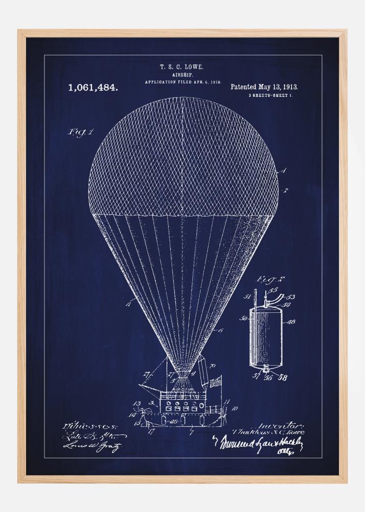 Patenta rasējums - Gaisa balons zīmējums - Zils Plakāts