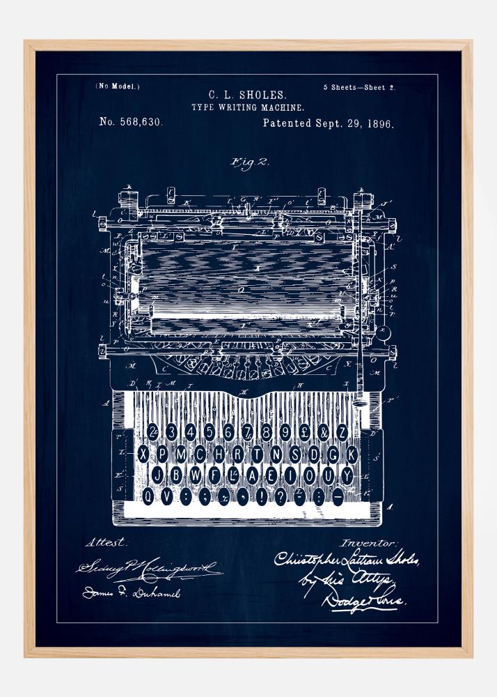 Patenta rasējums - Rakstāmmašīna - Zils Plakāts