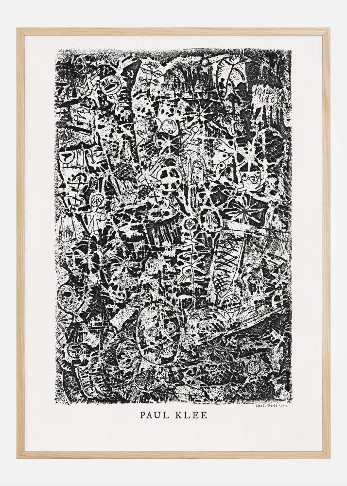 Šis plakāts attēlo Paula Klē "Mazo pasauli" no 1914. gada un ir ievērojams piemērs mākslinieka agrīnajai grafisko rakstu un simbolu izpētei. Šo drukātu materiālu raksturo tā detaļu bagāts un sarežģīts līniju spēks, kas savijas, lai radītu dziļu un sarežģītu attēlu pasauli. Tā ir ideāla afiša tiem, kas vēlas ieviest sava mājokļa vai darba vietas vidē mākslas vēstures nozīmīgumu un intelektuālu stimulāciju.