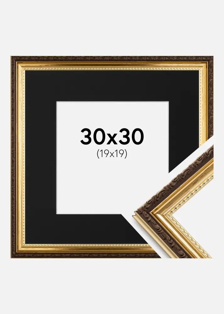 Rāmis Abisko Zelta 30x30 cm - Paspartū Melns 20x20 cm
