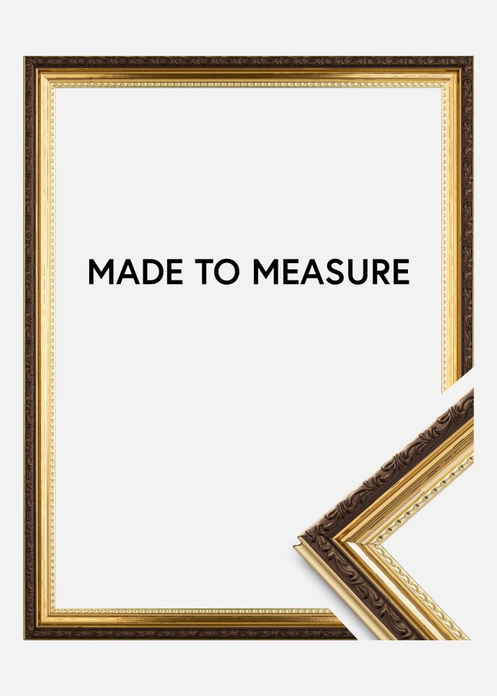 Abisko ir elegants zeltains foto rāmis retro stilā ar skaistiem rotājumiem. Rāmis ir zelts ar sarkaniem elementiem un tam ir skaista rotāta ārējā mala siltā brūnā krāsā. Ļoti labi piemērots, ja meklējat zeltainu rāmi vecākā stilā.