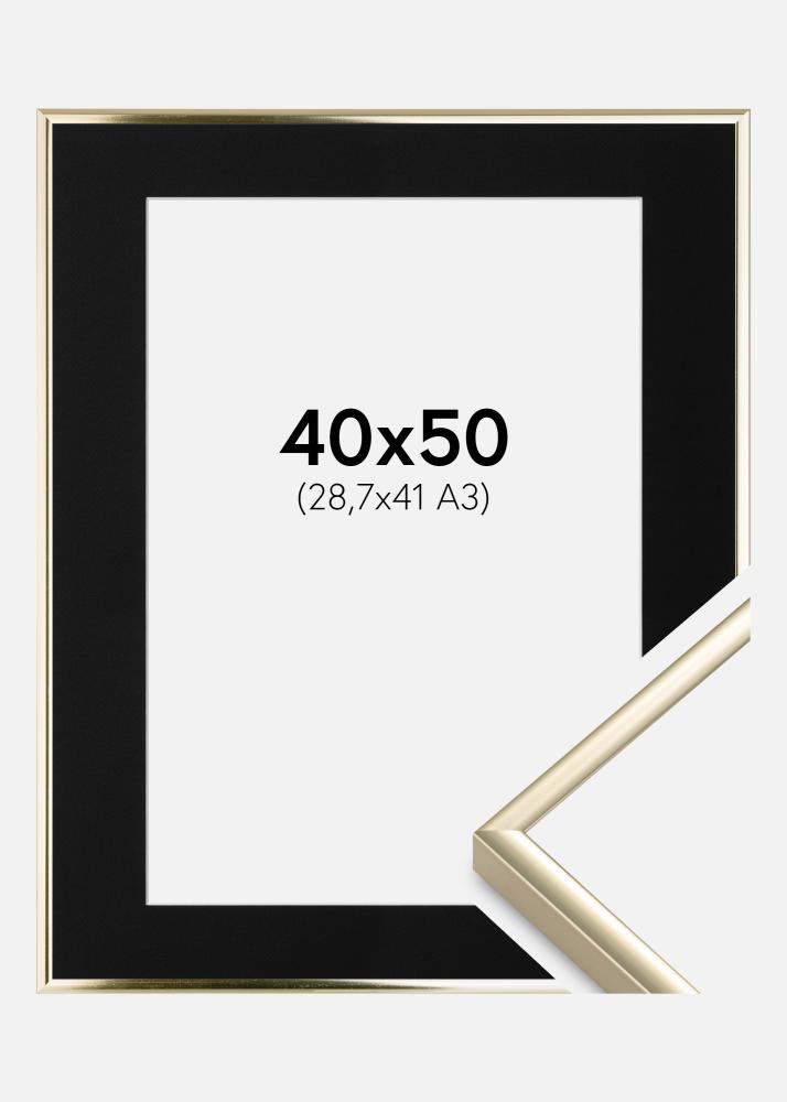 Rāmis Alumīnijs Glansēts Zelts 40x50 cm - Paspartū Melns 29,7x42 cm (A3)