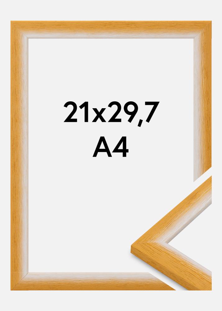 Šis fotorāmis izmērā 21x29,7 cm (A4) ir lieliska mūsdienīga dizaina un klasiskās elegances kombinācija. Siltā dzeltenā tonī un ar gludu virsmu tas smalki izceļ dabīgā koka struktūru. Šaurais profils ar rāmis lenti 23 mm un dziļumu 13 mm piešķir vienkāršu un atturīgu izskatu, ļaujot jūsu attēlam būt uzmanības centrā.
