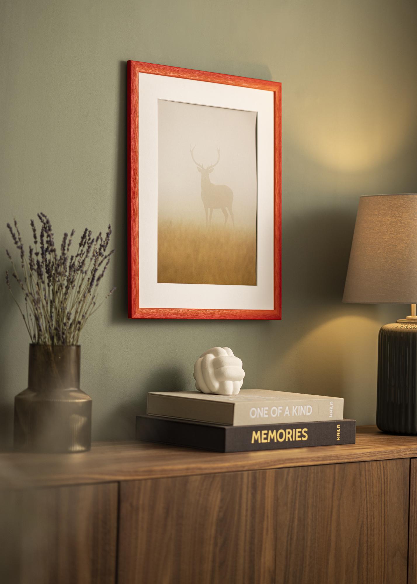 Mūsu pēc izmēriem izgatavotais rāmītis Cornwall Sarkanā ir perfekts risinājums, ja meklējat unikālu un personīgu ierāmējumu. Ar savu intensīvi sarkano krāsu un siltajiem toņiem šis foto rāmis kļūs par pamanāmu elementu jūsu mājās. Subtilā krāsas pāreja piešķir tam dzīvu izteiksmi, kas piesaista aci.
