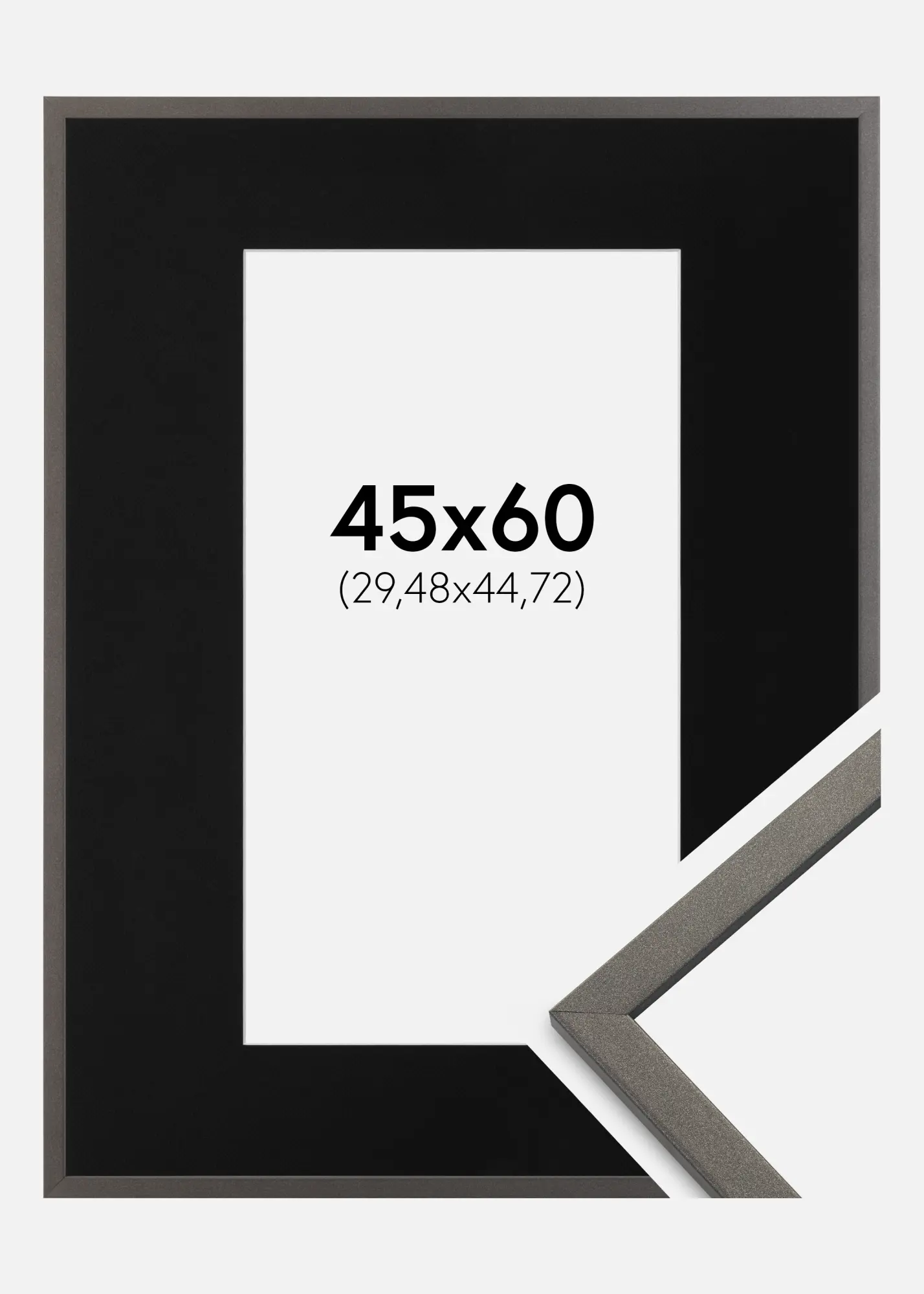 Piešķir saviem attēliem uzmanību, ko tie pelnījuši, ar elegantu sudraba rāmīti, kas aprīkots ar melnu passepartout, kas izceļ kontrastu un dziļumu tavā 12x18 collu (30,48x45,72 cm) fotogrāfijā. Matētā rāmja apdare, kura platums ir 13 mm un dziļums 11,5 mm, piedod tavam interjeram izsmalcinātu pieskārienu.