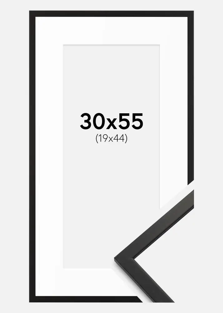 Elegants melns rāmis ar paspartū var pārvērst jebkuru fotoattēlu vai mākslas darbu par stilīgu interjera detaļu. Šis rāmis ir paredzēts attēliem izmērā 20x45 cm un tam ir matēta apdare, kas piešķir modernu un izsmalcinātu sajūtu. Ar platumu 13 mm un dziļumu 11,5 mm, rāmis ir gan plūstošs, gan izturīgs, padarot to par lielisku izvēli, lai izceltu jūsu iecienītākos attēlus.