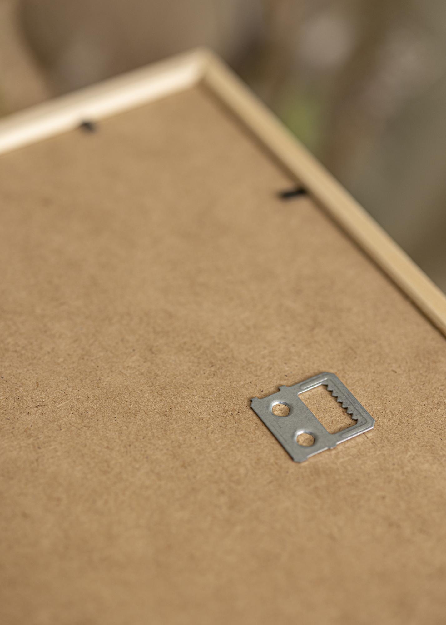 Attēlu rāmja kantainais profils kopā ar labi sabalansētām dimensijām uzsver rāmja modernu dizainu. Rāmim ir peldošs stikls, kas ir stikls ar labākām gaismas īpašībām un ar 40-45% UV aizsardzību. Brūnais aizmugures panelis ir izgatavots no MDF un tiek turēts vietā ar maziem metāla stieņiem, kurus viegli var saliekt uz augšu, kad vēlaties uzstādīt savu attēlu. Uz aizmugures paneļa atrodas piekares cilpas gan vertikālai, gan horizontālai montāžai.