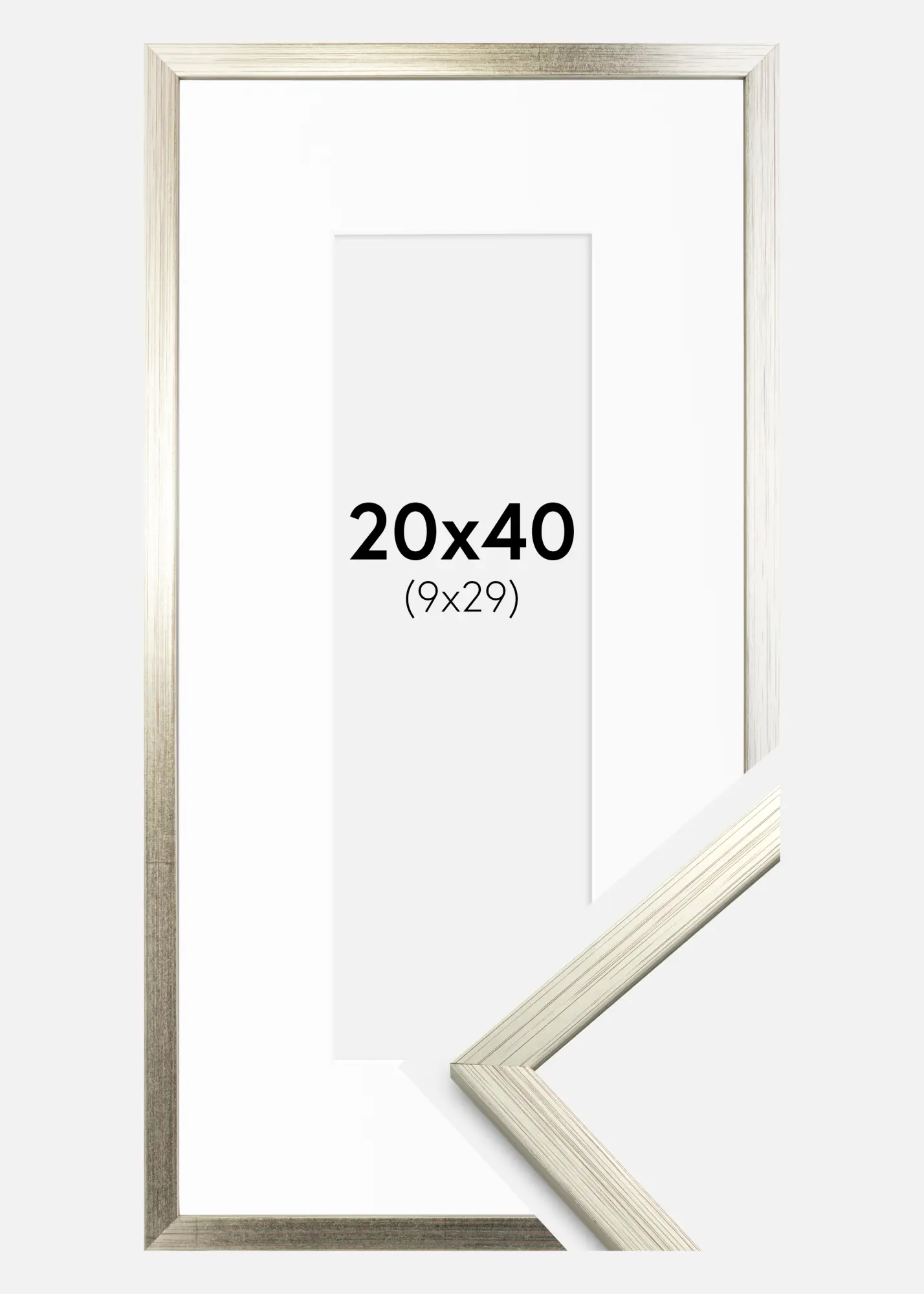 Piedzīvojiet mākslu izcelt savus attēlus ar mūsu eleganto sudraba rāmi ar baltu passepartout. Šis rāmis ir ideāli piemērots jūsu 10x30 cm attēliem, lai sniegtu tiem profesionālu un izsmalcinātu izskatu. Rāmja platums 13 mm un dziļums 11,5 mm veido skaistu ietvaru, nedominējot.