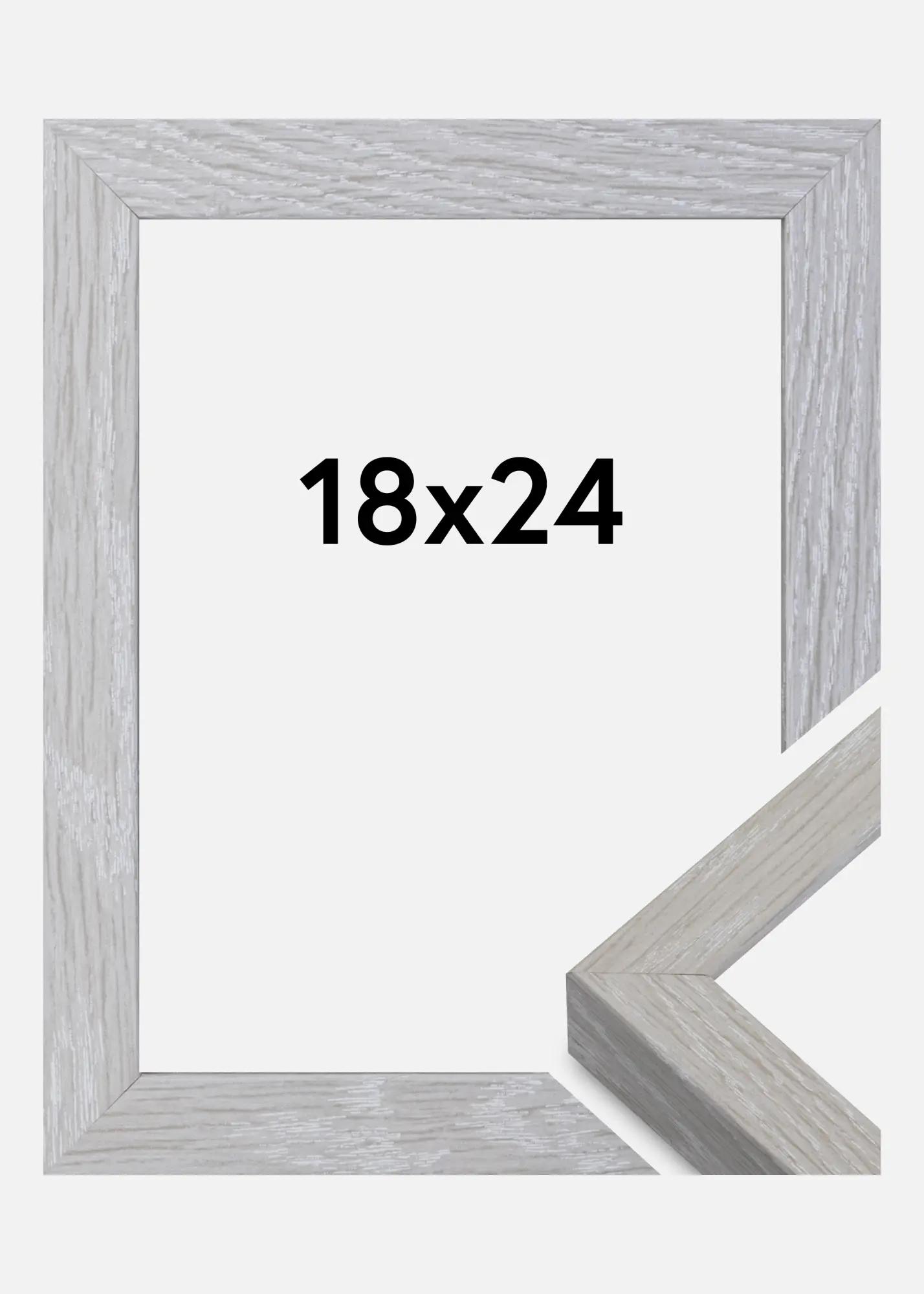 Elegants kārbas rāmis ar graudainu baltu koka virsmu un dziļumu līdz 30 mm. Rāmim komplektā ir arī atstatums, kas ļauj vienkārši ierāmēt citas lietas, piemēram, dažādas atmiņu lietas, ne tikai bildes. Tas padara "Eleganto kastīti pelēku" par rāmi ar daudzām iespējām. Rāmim komplektā ir arī balta passepartoute.