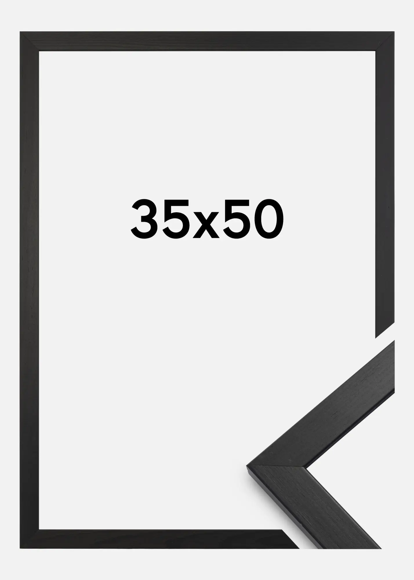 Stilīgs Melns ir pieejams vairākos izmēros, un šim rāmim izmērs ir 35x50 cm.