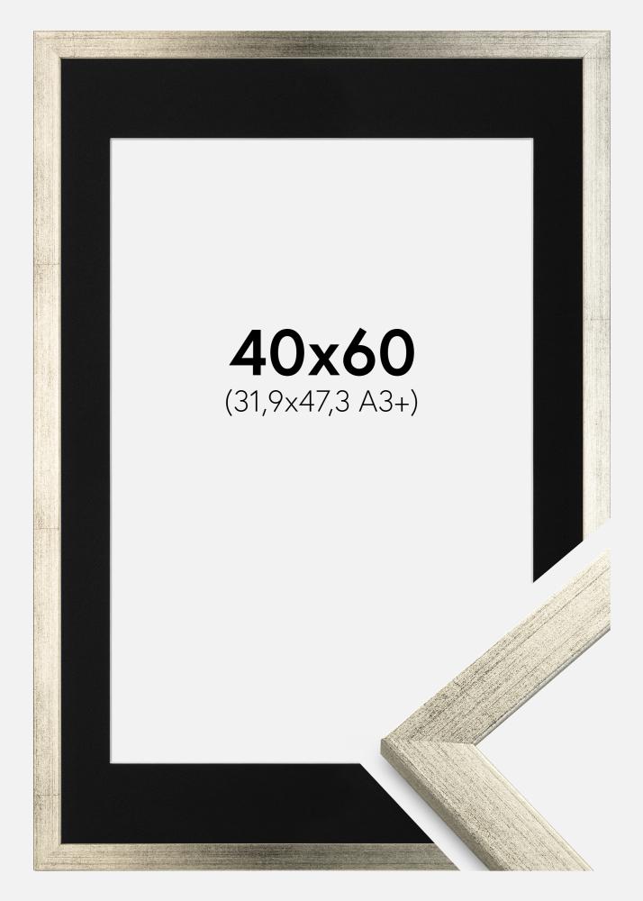 Rāmis Estētisks Sudrabs 40x60 cm - Paspartū Melns 32,9x48,3 cm (A3+)