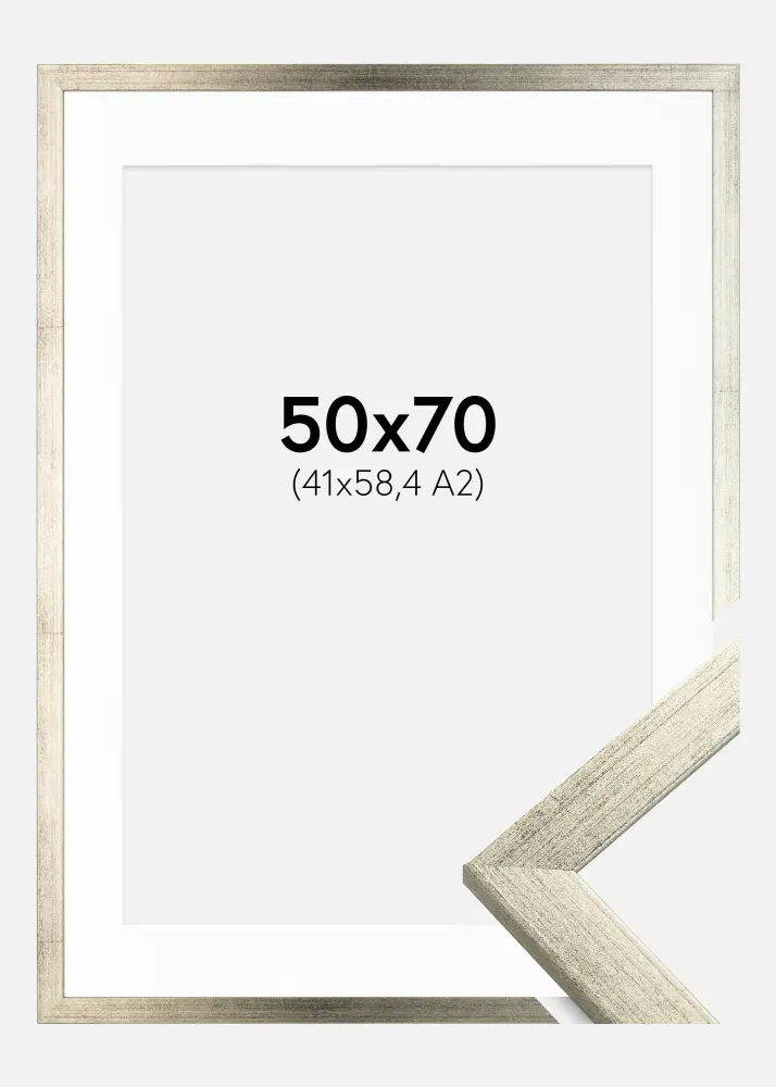 Rāmis Estētisks Sudrabs 50x70 cm - Paspartū Balts 42x59,4 cm (A2)