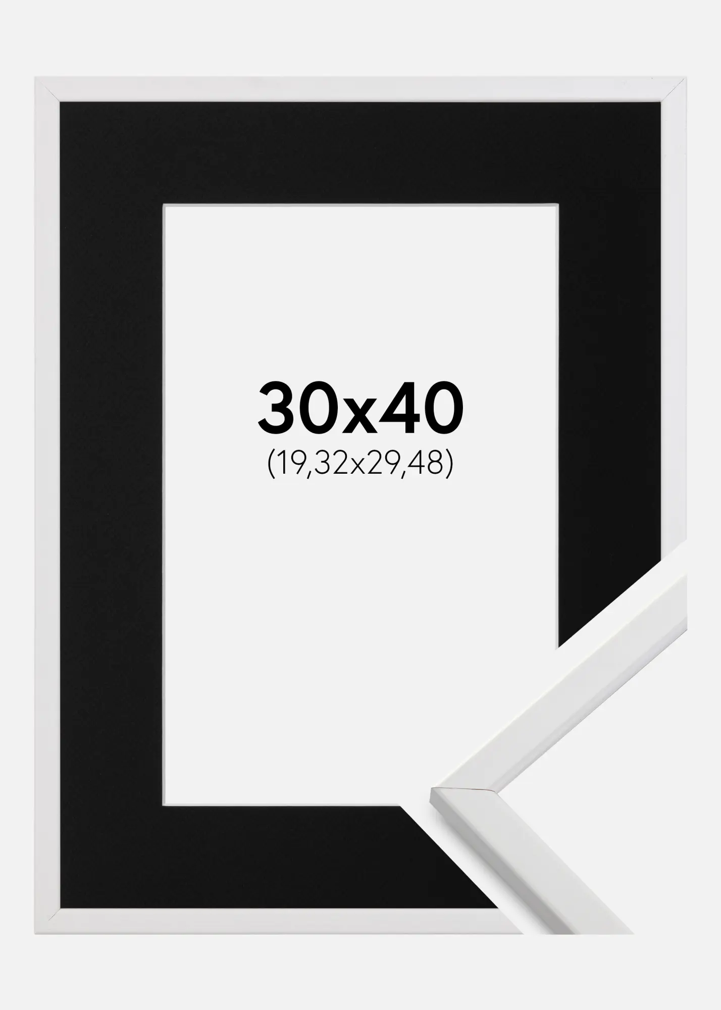Rāmis Galant Balts 30x40 cm - Paspartū Melns 8x12 inches