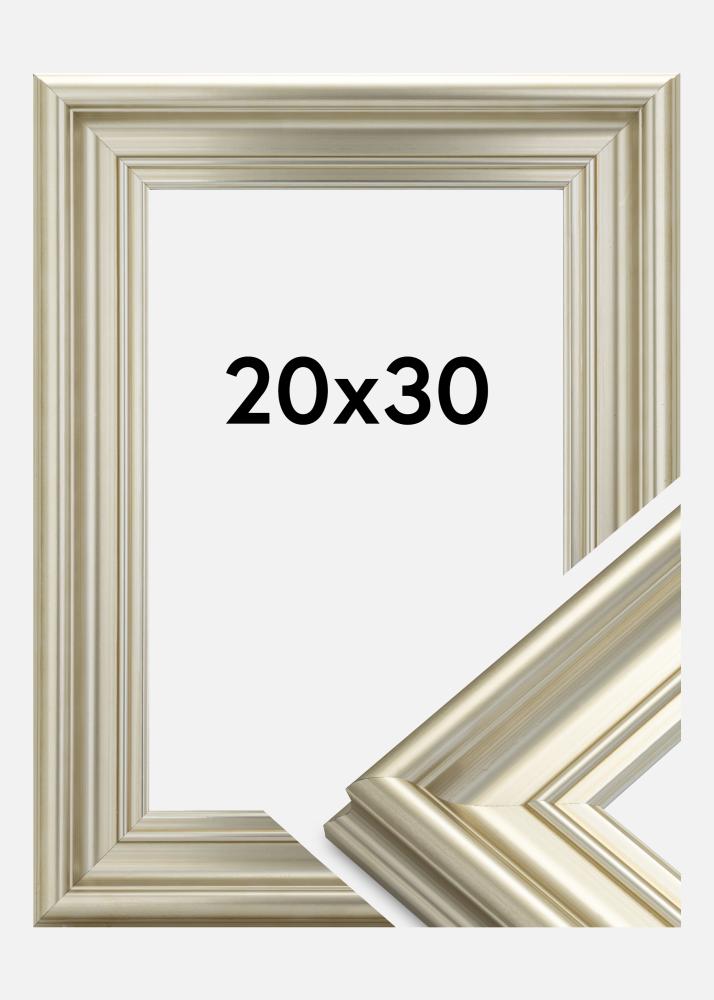 Mora Premium Silver ir viens no mūsu smalkākajiem sudraba rāmjiem. Izgatavots no koksnes, kas nākusi no mūsu skaistajiem Zviedrijas mežiem, un salikts mūsu pašu rāmju darbnīcā. Tas ļauj mums garantēt kvalitāti, kas pārsniedz parasto. Rāmim ir maigi sudraba krāsas profils senā krāsotā stilā ar platumu līdz 57 mm. Lieliski piemērots jūsu skaistākajiem attēliem!