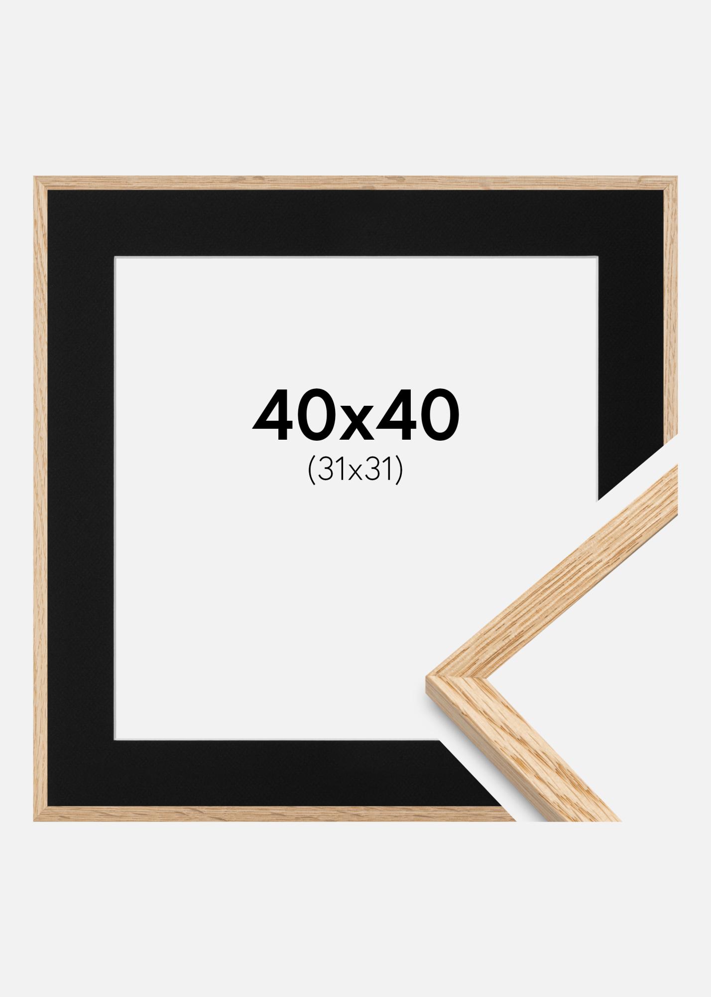 Rāmja platums ir 11 mm un dziļums ir 13 mm, kas rada diskrētu, bet tomēr klātesošu sajūtu uz sienas. Matētais apdare papildina melno passepartout un rada harmonisku veselumu. Ar ārējiem izmēriem 41,5x41,5 cm šis kvadrātveida rāmis perfekti der attēliem, kuru izmērs ir 32x32 cm.