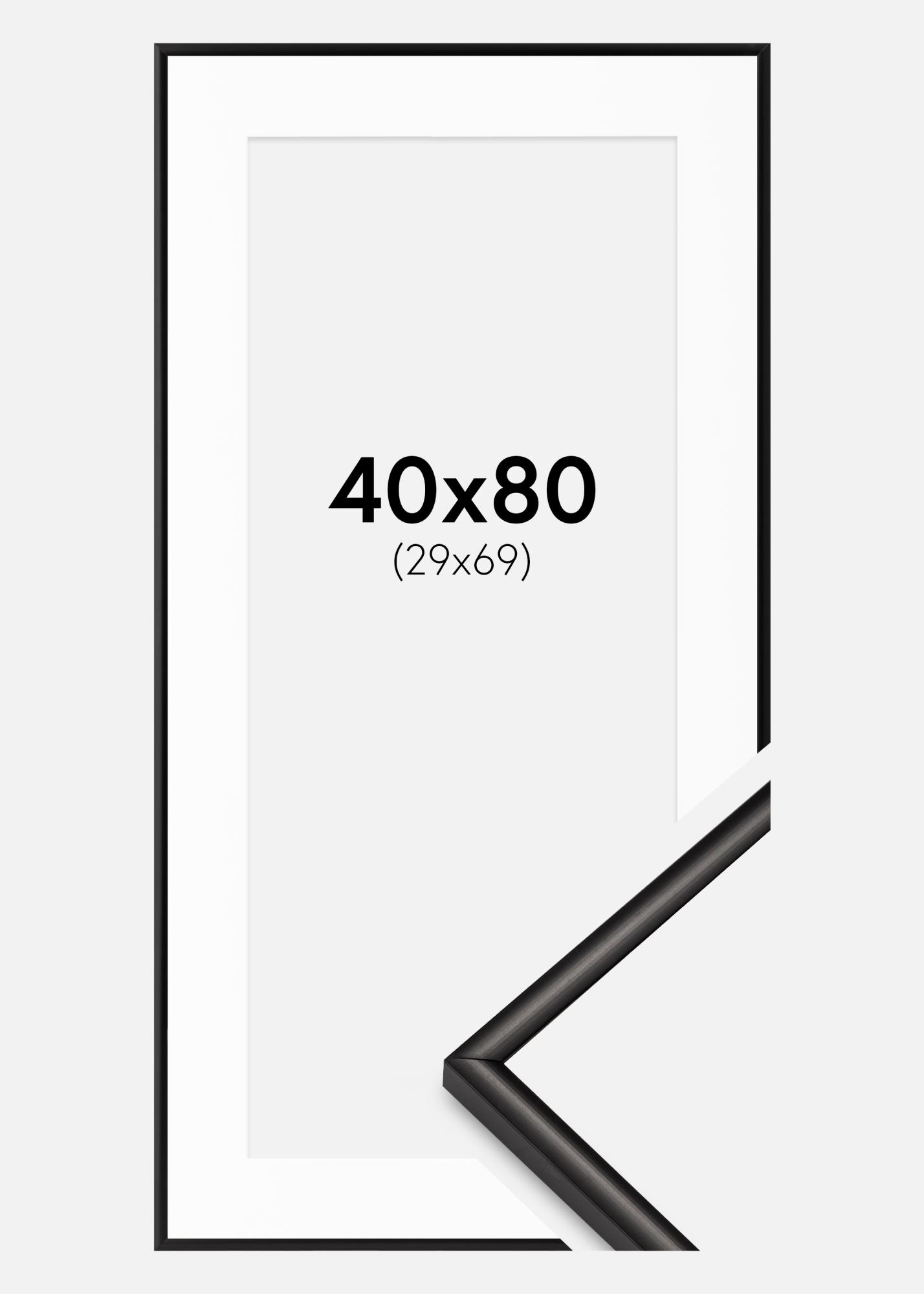 Rāmim ir platums 9,8 mm un dziļums 16 mm, kas nodrošina stabilu un robustu sajūtu. Matētā virsma ir melnā krāsā, kas piešķir modernu un laikmetīgu izskatu, kas pielāgojas lielākajai daļai interjera stilu. Rāmja ārējie izmēri ir 41x81 cm, kas sniedz lielu ierāmējumu, kas patiešām ļauj jūsu attēlam būt uzmanības centrā.