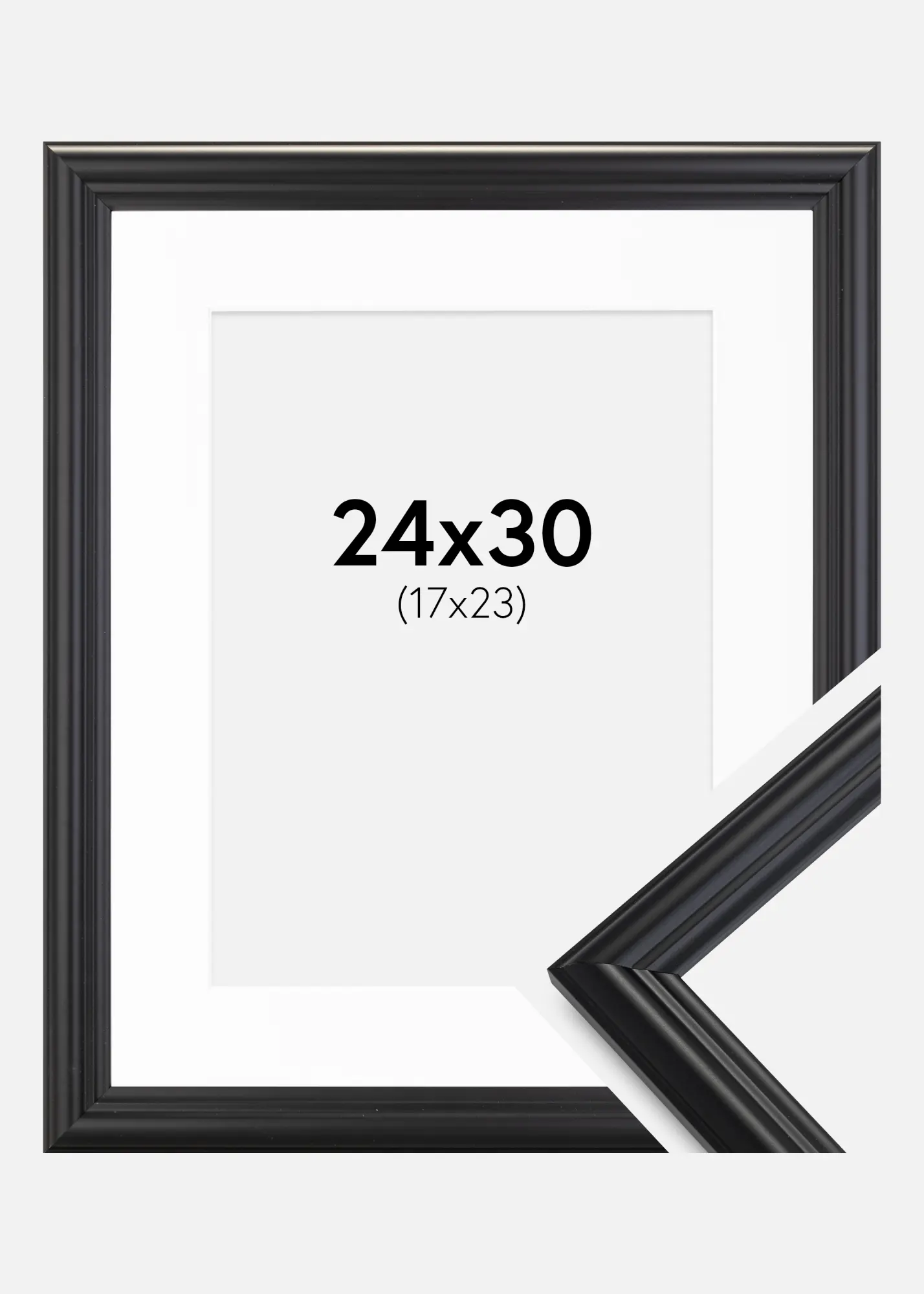 Rāmim ir matēts melns pārklājums, kas papildina jebkura veida iekštelpu stilu - no mūsdienīga līdz klasiskam. Ar platumu 24 mm un dziļumu 19 mm, rāmis sniedz stingru un izteiksmīgu malu ap jūsu attēlu. Baltā paspartū kalpo ne vien kā estētiska robeža, bet arī palīdz saglabāt attēlu, turot to prom no stikla.