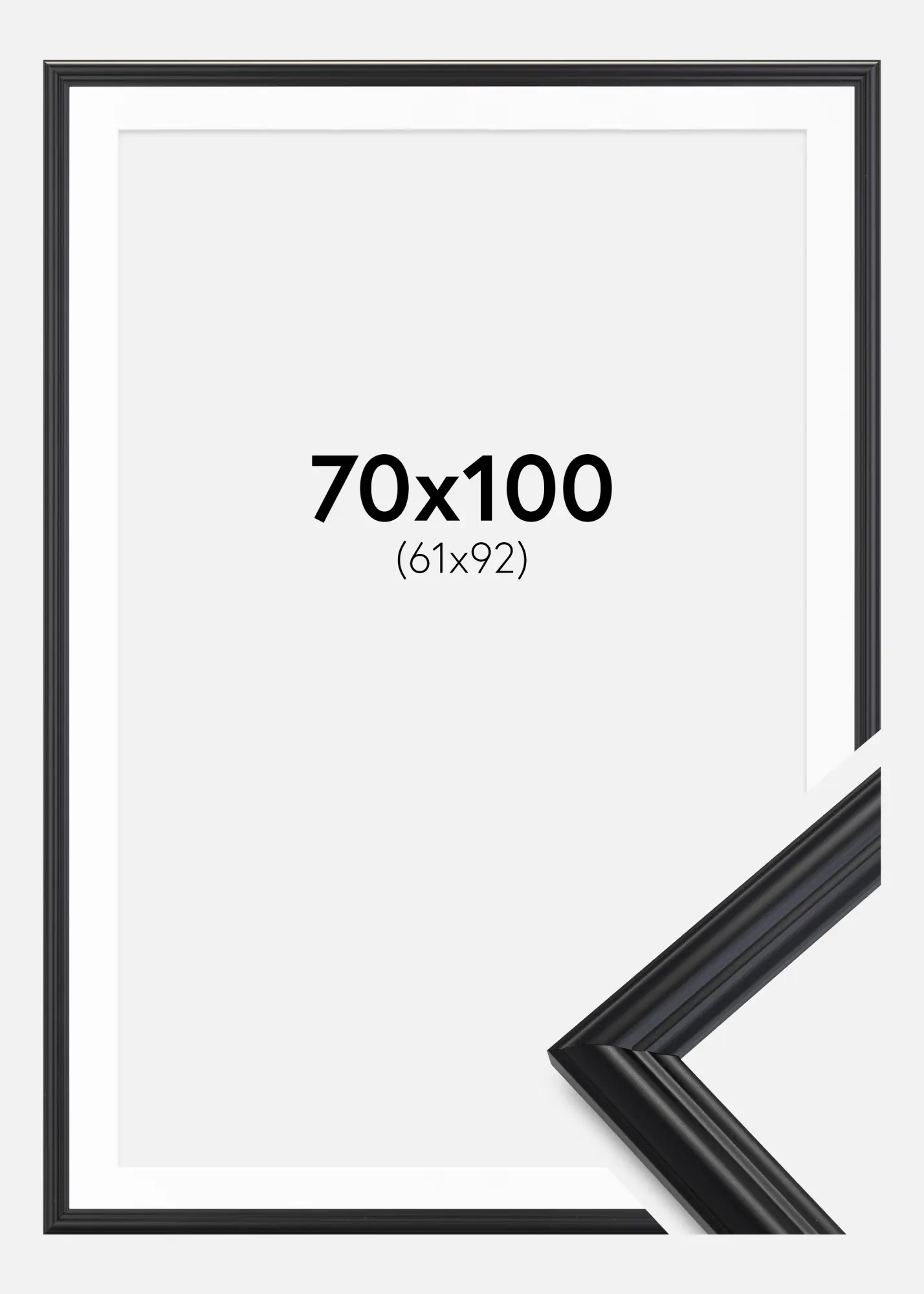 Rāmis, kura platums ir 24 mm un dziļums 19 mm, ir ar matētu virsmu, kas papildina balto passepartoutu un veido harmonisku veselumu. Rāmja melnā krāsa ir spēcīgs kontrasts ar passepartout balto toni, ļaujot jūsu attēlam patiešām izcelties. Passepartout ne tikai estētiski izskatās, bet arī aizsargā attēlu no pieskāriena stiklam, kas palīdz saglabāt fotogrāfiju vai mākslas darbu laika gaitā.
