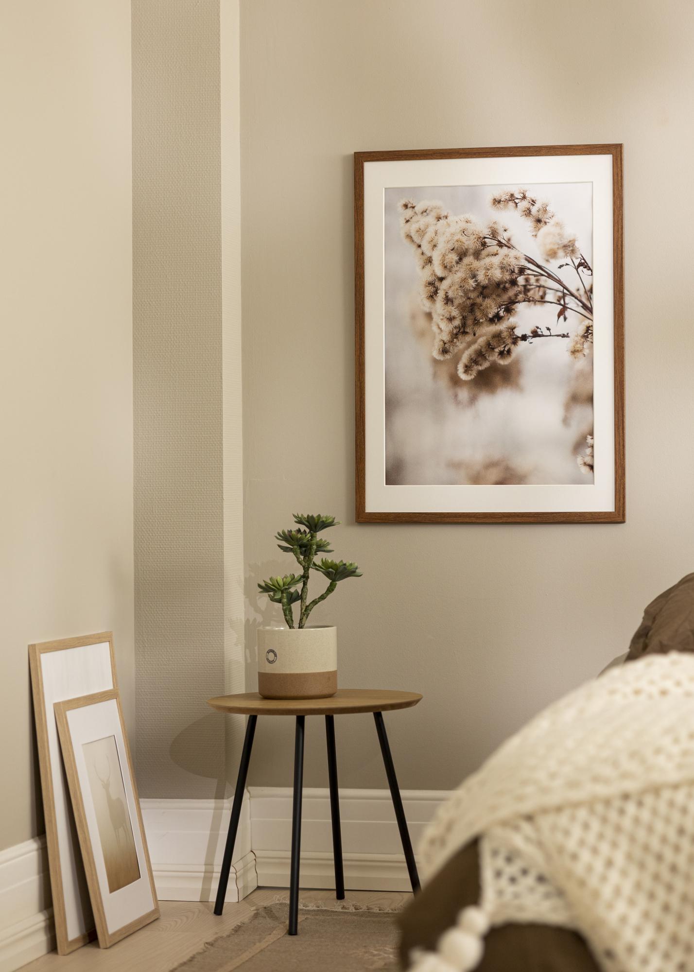 Šis elegantais koka rāmis ir ideāla izvēle, lai izceltu jūsu iecienītākos attēlus. Ar stilīgu un matētu apdari tas rada izsmalcinātu iespaidu, kas piemērots lielākajai daļai interjera stilu. Rāmja platums ir 20 mm, bet dziļums 14 mm, nodrošinot stabilu un izturīgu sajūtu.