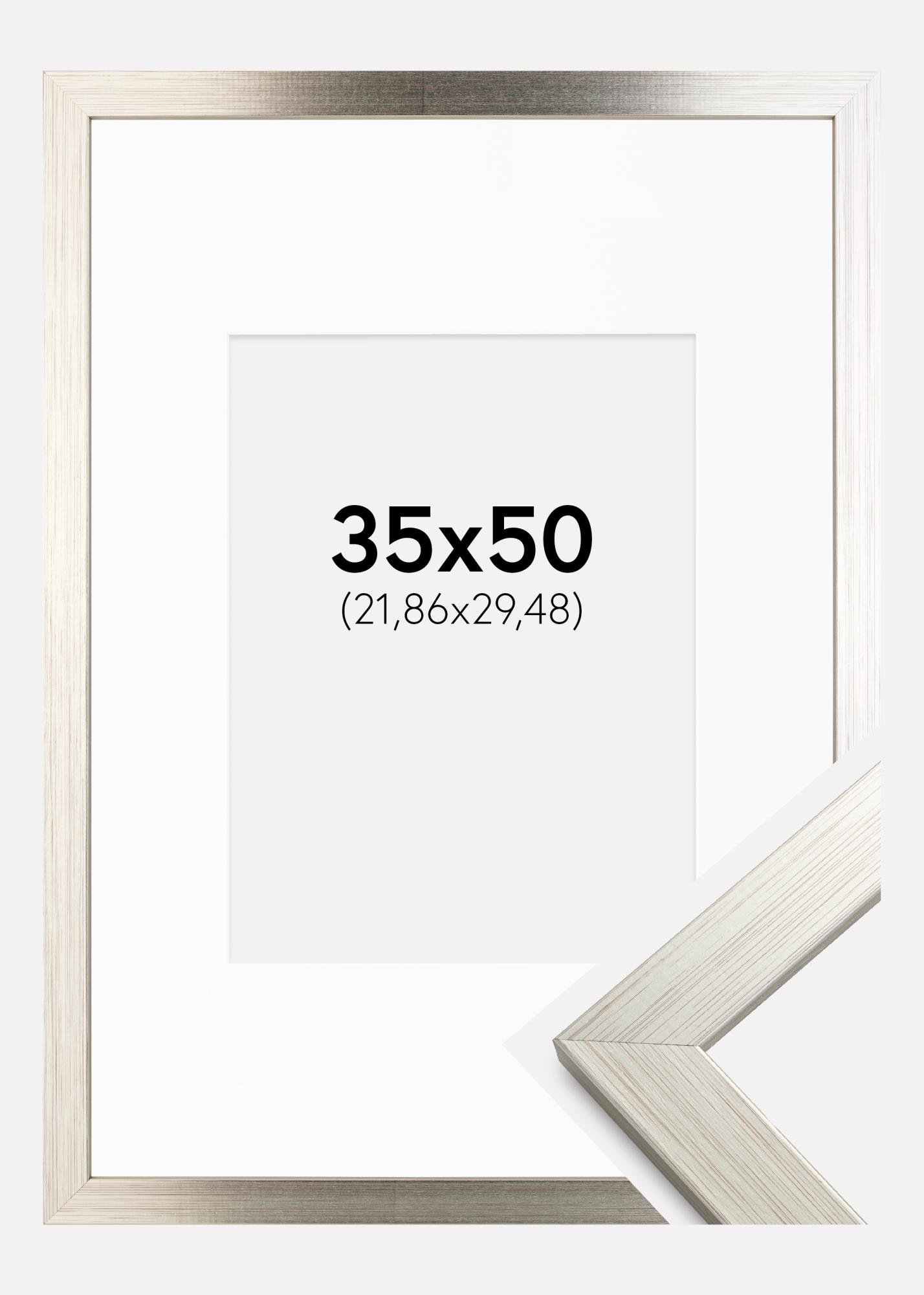 Rāmis Sudrabs Wood 35x50 cm - Paspartū Balts 9x12 inches