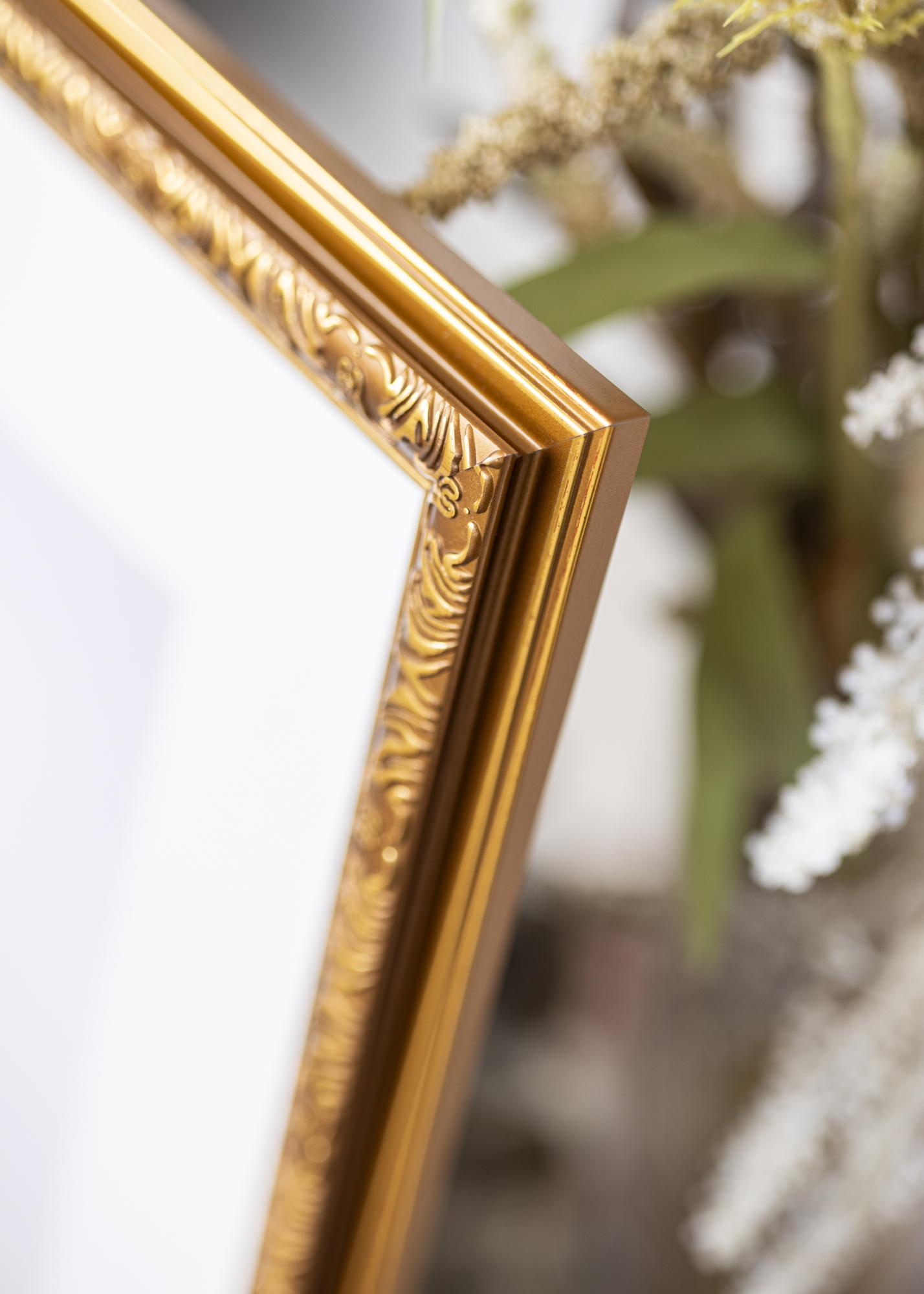 Greznais zelta pārklājums kopā ar dekoratīvajām, ornamentētajām detaļām gar iekšējo malu rada laikmetīgu un tradicionālu atmosfēru. Tas padara rāmi par ideālu izvēli gan klasiskām, gan elegantām interjera stilistikām. Neatkarīgi no tā, vai vēlaties piešķirt savam mājoklim nedaudz glamūra vai papildināt jau stilīgu vidi, šis foto rāmis kļūs par skatienu pievērsošu elementu.
