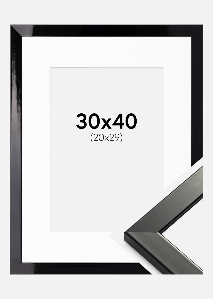 Rāmis Uppsala Melni spīdīgs rāmis 30x40 cm - Paspartū Balts 21x30 cm