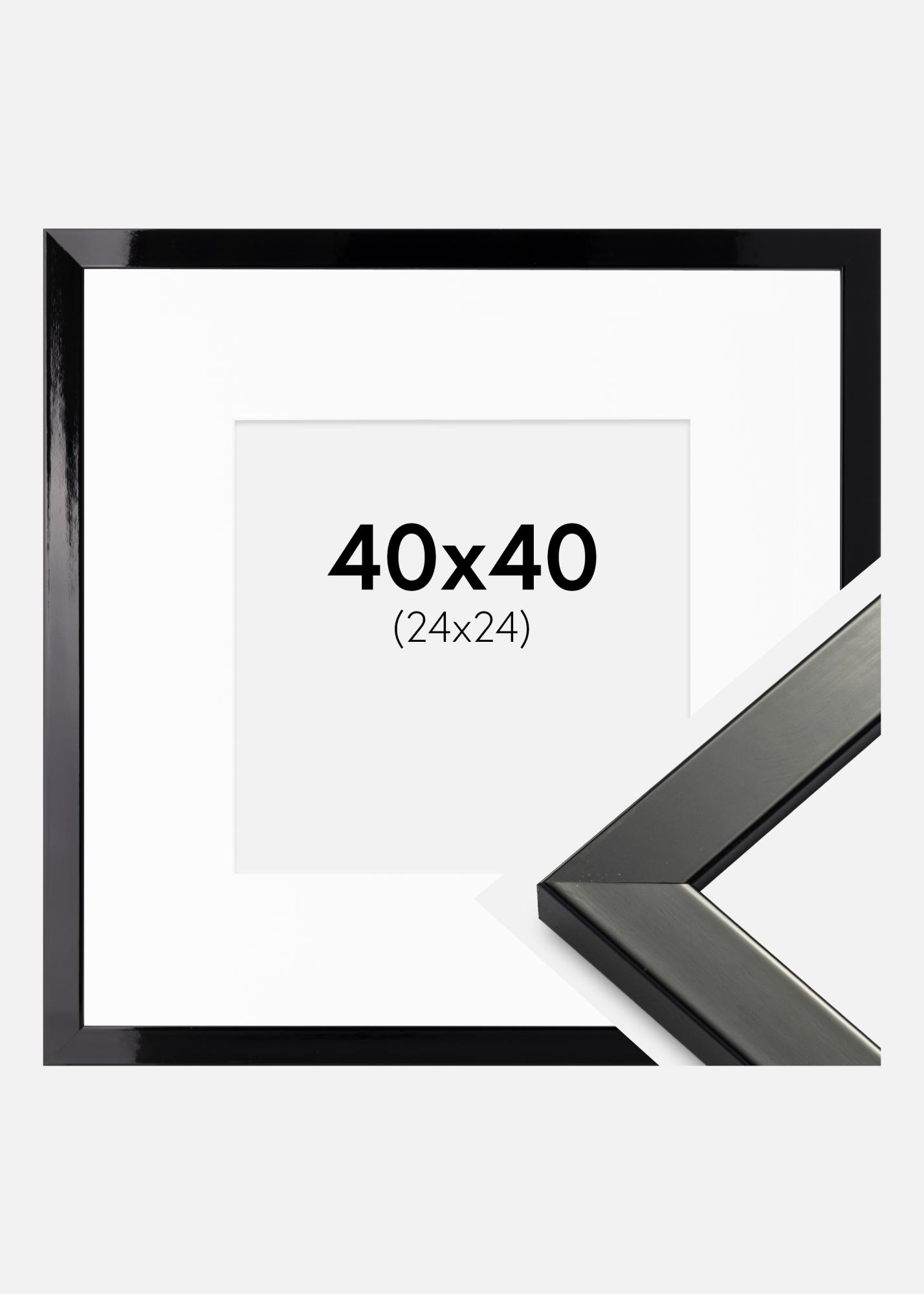 Rāmis Uppsala Melni spīdīgs rāmis 40x40 cm - Paspartū Balts 25x25 cm