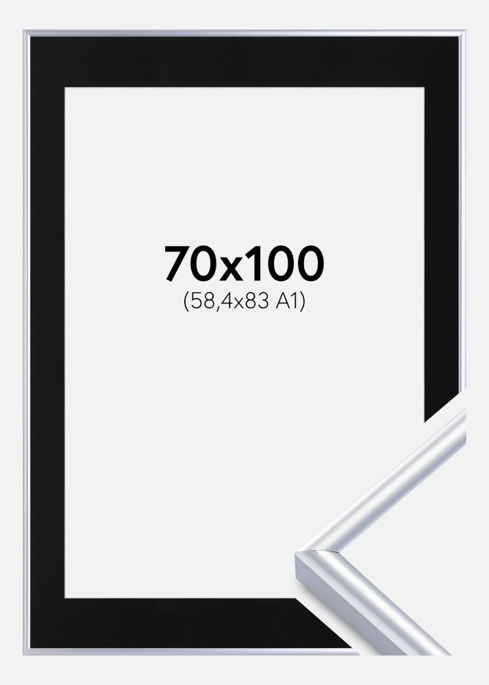 Rāmis Victoria Sudrabs 70x100 cm - Paspartū Melns 59,4x84 cm (A1)