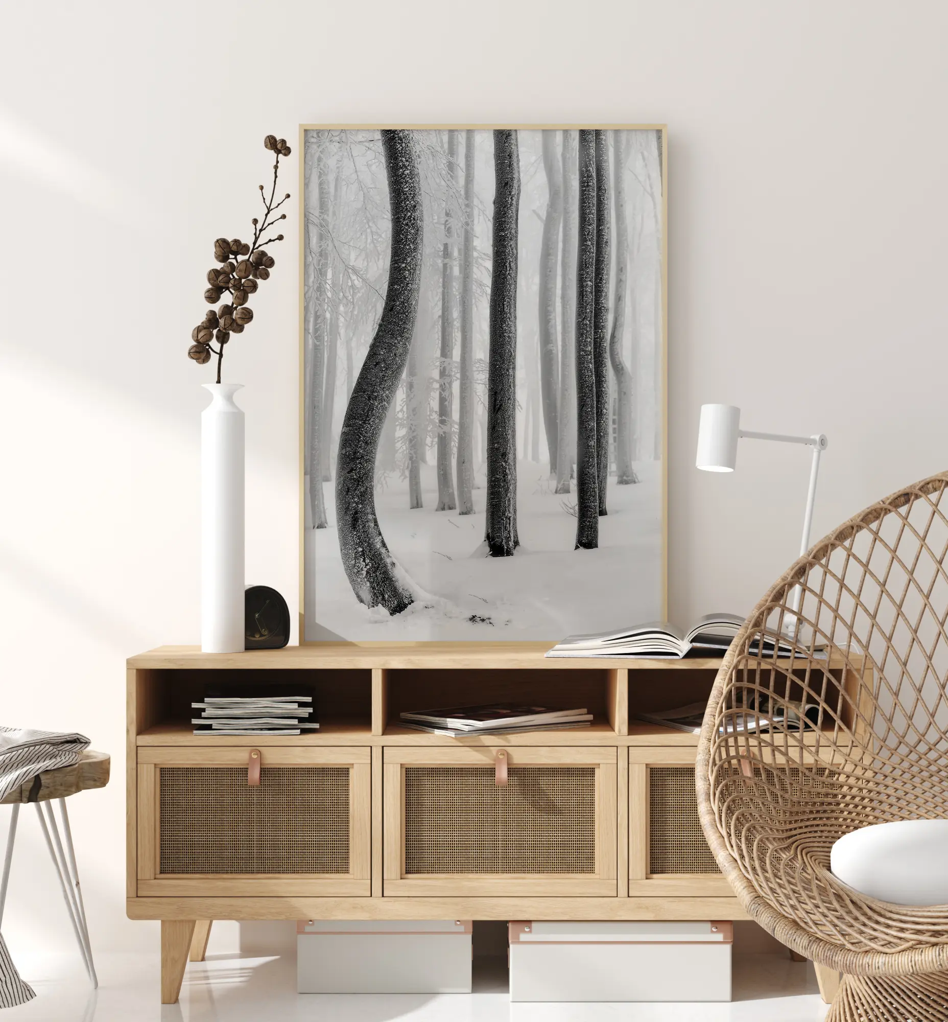 Stilīgs plakāts, kas ir izdevīgi saskaņots ar citiem motīviem, lai izveidotu modernu attēlu sienu.