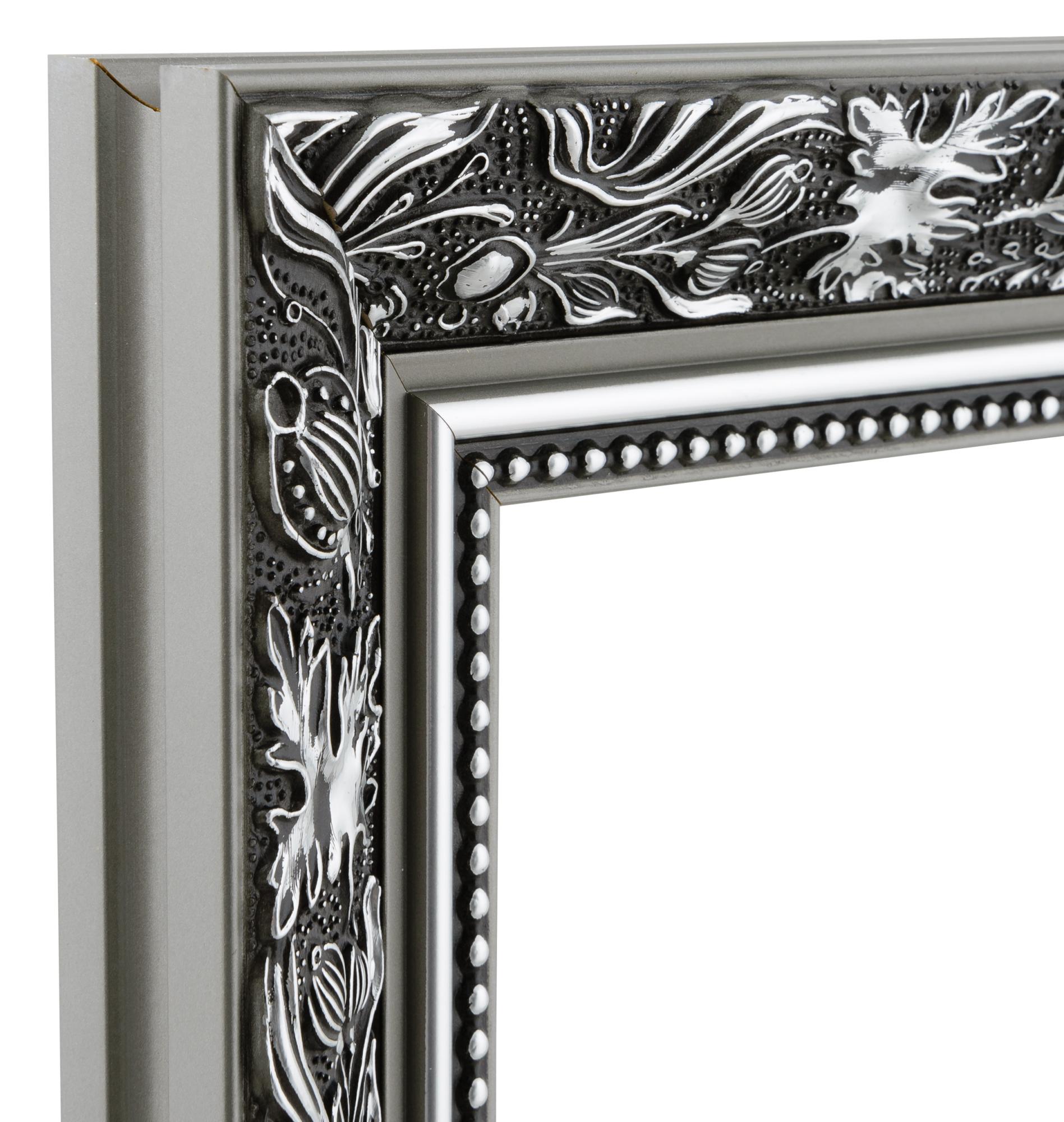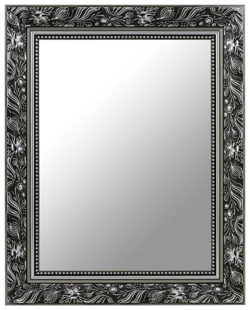 Spoguļojiet sevi ar stilu šajā gardajā spogulī, kas ir melnā un sudraba krāsā! Spoguļa rāmis ir gan matēts, gan spīdīgs, kas padara to ļoti dekoratīvu. Priekšpusē ir plaša daļa ar lapu rakstu, gludas daļas matētā un spīdīgā sudrabā, kā arī pērlīšu raksts tieši pie stikla. Tā kā spoguli ražo mūsu pašu rāmju darbnīcā kvalificēts personāls, jūs varat sagaidīt augstas kvalitātes produktu!