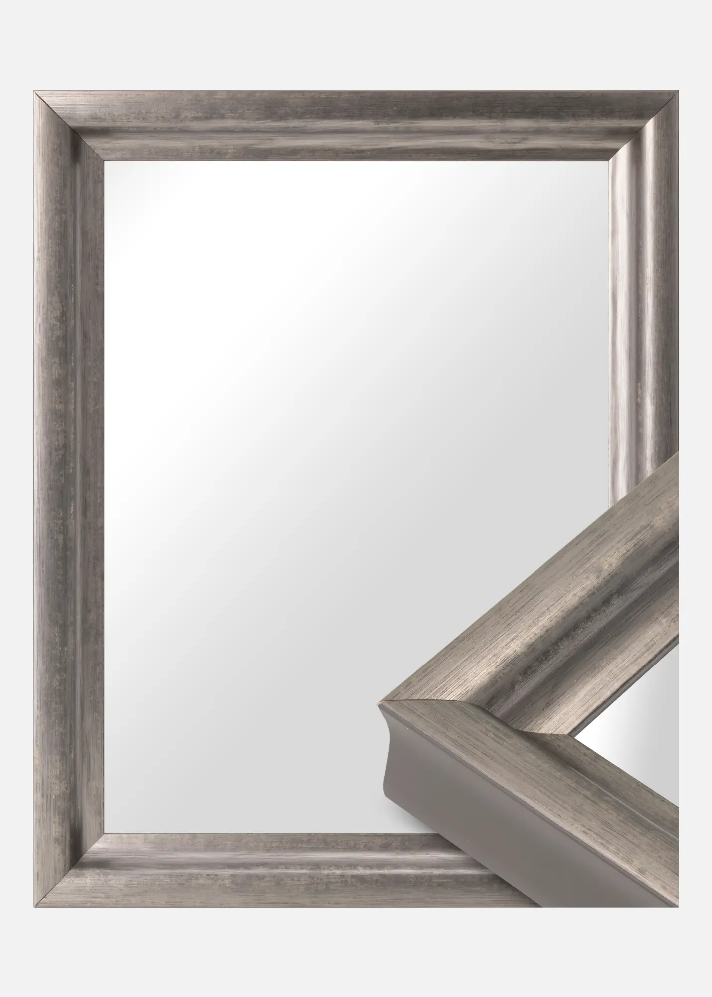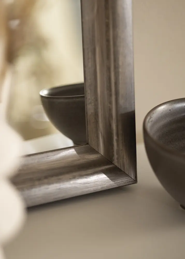 Klasisks spogulis, kur jūs paši varat izvēlēties, cik lielu spoguli vēlaties. Ar savu platu un dziļu profilu tas noteikti ir spogulis, kas piesaista uzmanību. Spogulim ir sudrabota zīmuļa tonis patīkamās krāsu variācijās, kas labi der attēliem, kuriem vēlaties pievērst īpašu uzmanību.